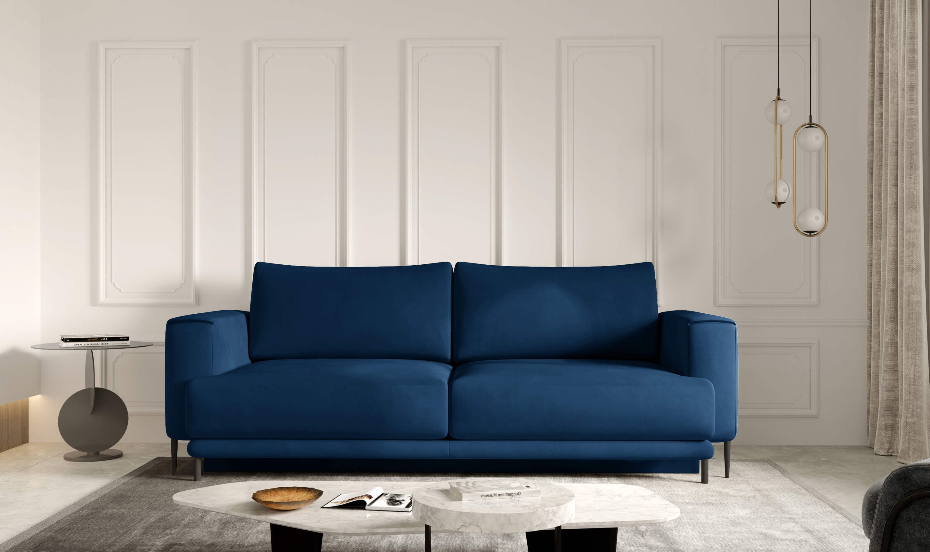 Das Sofa Daria von MF-Design bietet erstklassigen Komfort und ist für all jene entworfen, die Wert auf Bequemlichkeit legen. Mit einer beeindruckenden Länge von 248 cm und einer großzügigen Liegefläche von 200 x 146 cm ist es ideal für entspannte Stunden und Gästeübernachtungen. Der Bezug in edler Samtoptik verleiht dem Sofa einen luxuriösen Look, während die Kombination aus hochelastischem HR-Schaum und einer hochwertigen Wellfeder für optimalen Sitzkomfort sorgt.