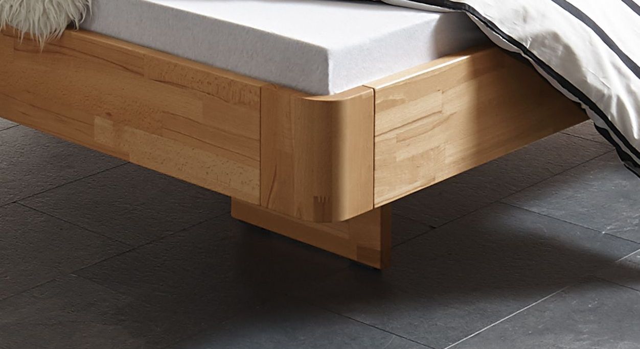 Das Massivholzbett in Kernbuche überzeugt durch seine hochwertige Verarbeitung und die elegante Schwebeoptik. Mit einer Liegefläche von 200x200 cm bietet es viel Platz für komfortable Nächte.