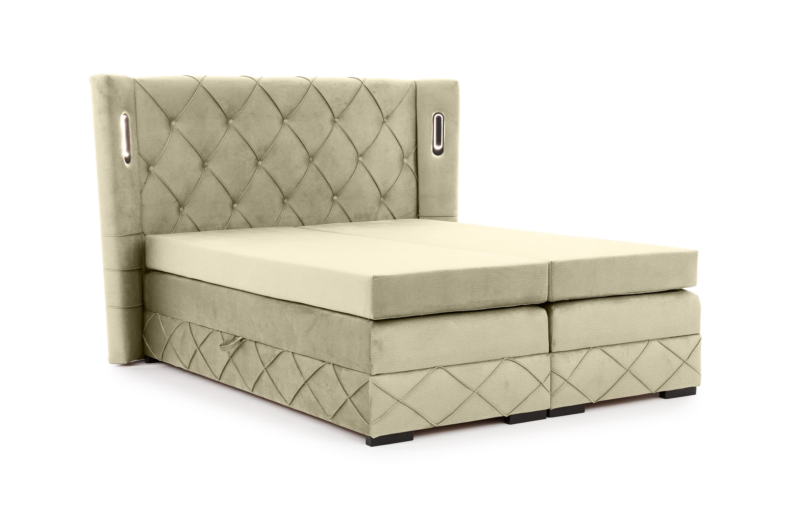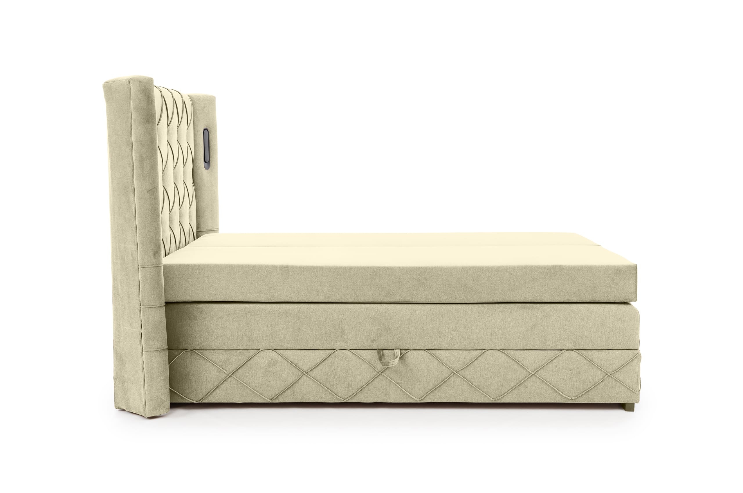 Das Boxspringbett "Aurelia Lux" bietet eine Synthese aus Stil und Funktionalität, perfekt für jedes Schlafzimmer. Es ist verfügbar in einer Palette von Farben und Größen, die zu jeder Raumgestaltung passen. Im Zentrum dieses modernen Schlafmöbels steht eine Taschenfederkernmatratze, die nicht nur für ergonomischen Schlafkomfort sorgt, sondern auch eine individuelle Körperanpassung ermöglicht. Das Boxspringbett-System, ein Merkmal für Langlebigkeit und Unterstützung, wird durch einen inkludierten Topper ergänzt, der den Liegekomfort noch weiter erhöht. Ein integrierter Bettkasten bietet praktischen Stauraum und hält das Schlafzimmer ordentlich. Für ein Ambiente der Ruhe und Entspannung sorgt die LED-Beleuchtung im Kopfteil, die eine sanfte Beleuchtung für die Abendstunden schafft. "Aurelia Lux" ist mehr als ein Bett, es ist eine Einladung zu erholsamem Schlaf in einem Möbelstück, das Design und Komfort meisterhaft vereint.