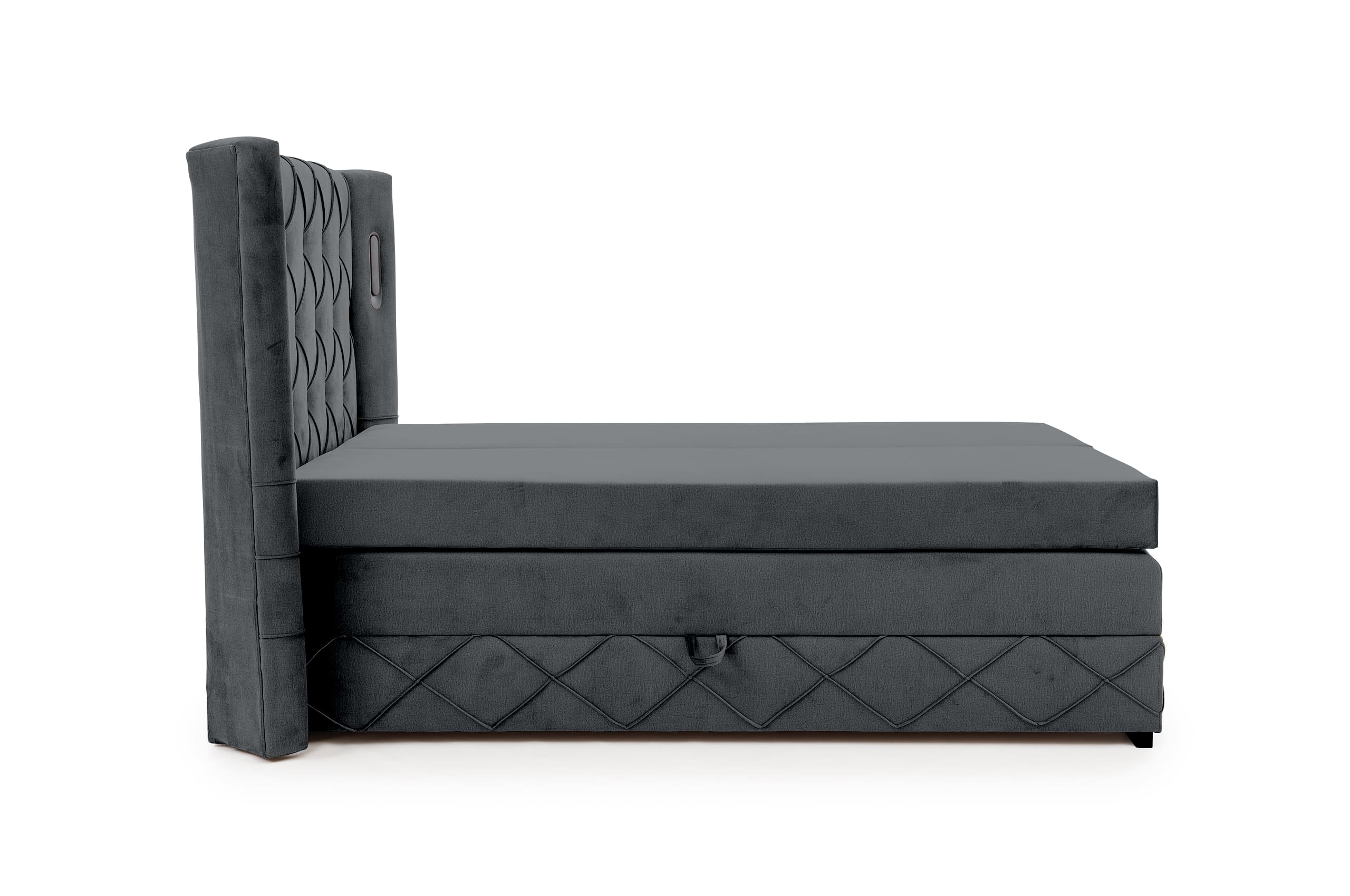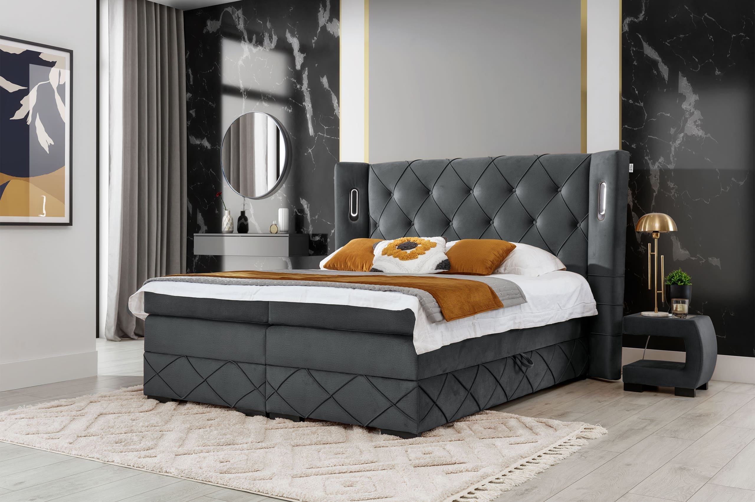 Das Boxspringbett "Aurelia Lux" bietet eine Synthese aus Stil und Funktionalität, perfekt für jedes Schlafzimmer. Es ist verfügbar in einer Palette von Farben und Größen, die zu jeder Raumgestaltung passen. Im Zentrum dieses modernen Schlafmöbels steht eine Taschenfederkernmatratze, die nicht nur für ergonomischen Schlafkomfort sorgt, sondern auch eine individuelle Körperanpassung ermöglicht. Das Boxspringbett-System, ein Merkmal für Langlebigkeit und Unterstützung, wird durch einen inkludierten Topper ergänzt, der den Liegekomfort noch weiter erhöht. Ein integrierter Bettkasten bietet praktischen Stauraum und hält das Schlafzimmer ordentlich. Für ein Ambiente der Ruhe und Entspannung sorgt die LED-Beleuchtung im Kopfteil, die eine sanfte Beleuchtung für die Abendstunden schafft. "Aurelia Lux" ist mehr als ein Bett, es ist eine Einladung zu erholsamem Schlaf in einem Möbelstück, das Design und Komfort meisterhaft vereint.