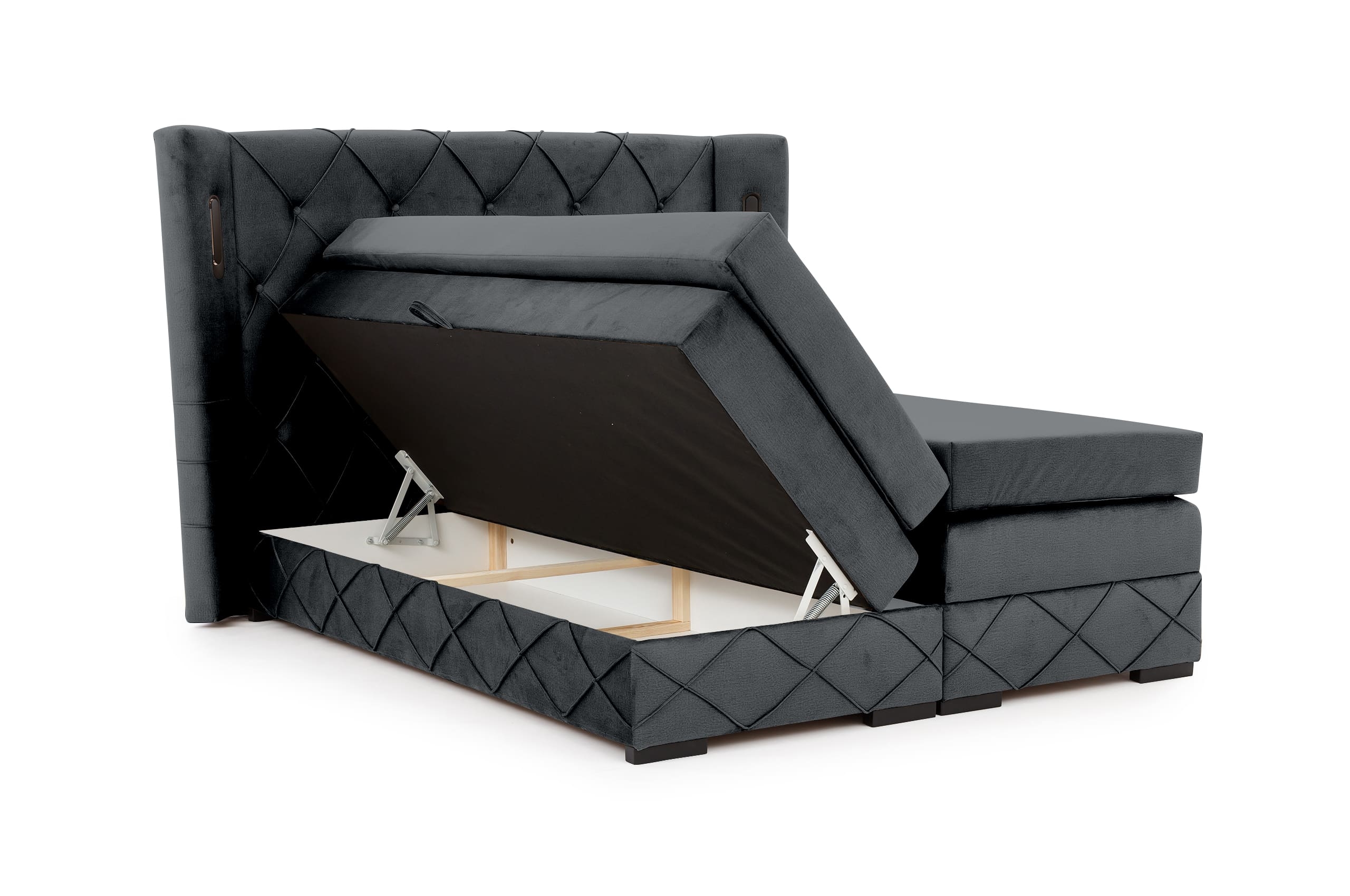 | Besonderheiten: | LED Beleuchtung, inkl. Topper, mit Bettkasten |