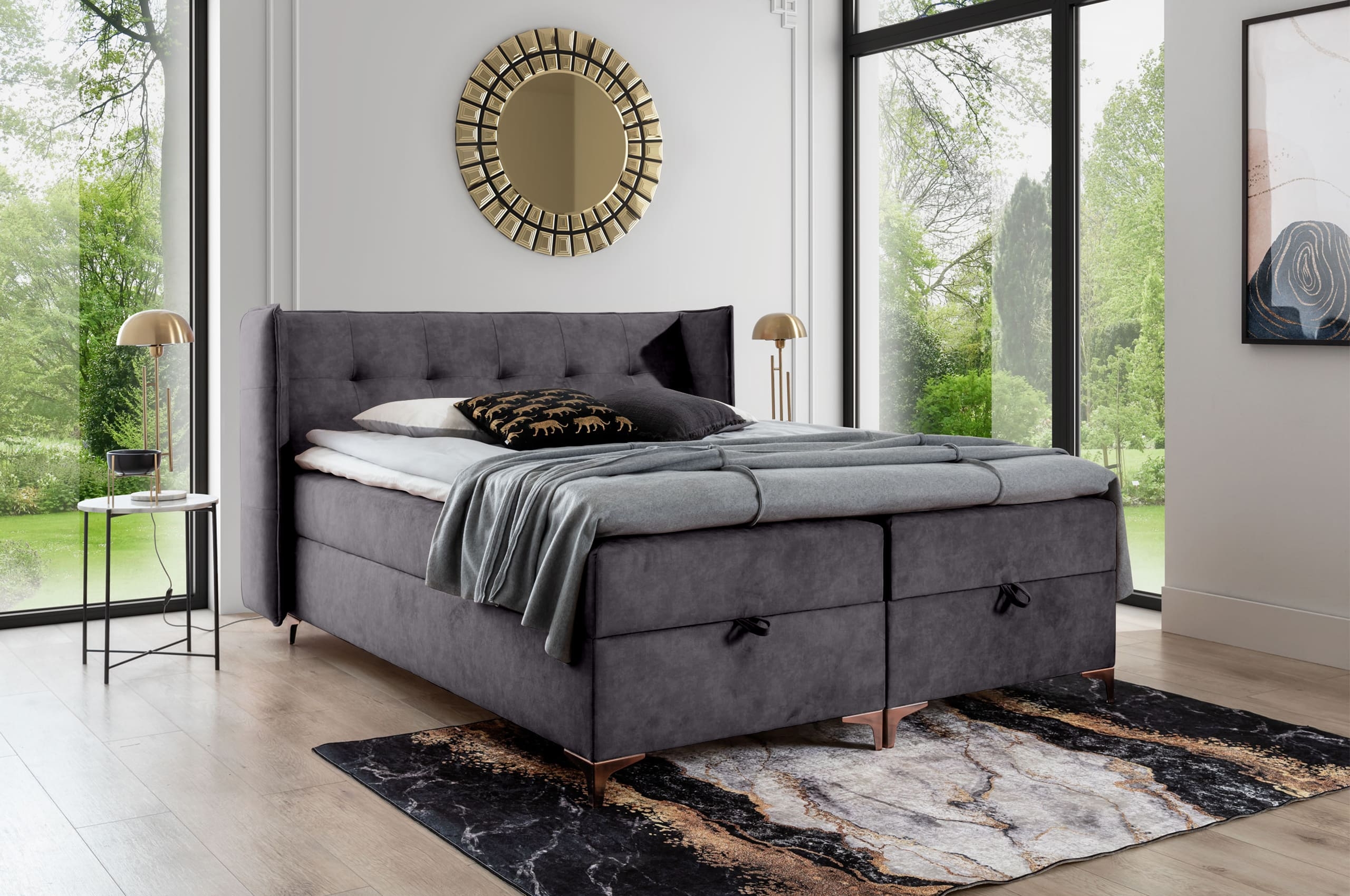 Das Boxspringbett "Elysium" ist ein Meisterstück der Schlafzimmermöbel, das Design, Funktionalität und erstklassigen Schlafkomfort geschickt kombiniert. Es verfügt über einen integrierten Bettkasten, der eine elegante Lösung für zusätzlichen Stauraum darstellt, perfekt, um Ihr Schlafzimmer frei von Unordnung zu halten. Im Herzen des "Elysium" liegt eine hochwertige Taschenfederkernmatratze, die für ihre hervorragende Anpassungsfähigkeit an die Konturen des Körpers und für die exzellente Druckverteilung bekannt ist. Dies gewährleistet ein Höchstmaß an Unterstützung und Komfort über die gesamte Liegefläche. Zur Komplettierung des luxuriösen Schlaferlebnisses gehört ein inkludierter Topper, der die Matratze schützt und gleichzeitig eine zusätzliche Schicht aus weichem, aber festem Komfort bietet. Mit dem "Elysium" Boxspringbett laden Sie Eleganz und Komfort in Ihr Schlafzimmer ein und schaffen einen Ort, an dem jede Nacht zur erholsamen Flucht wird.