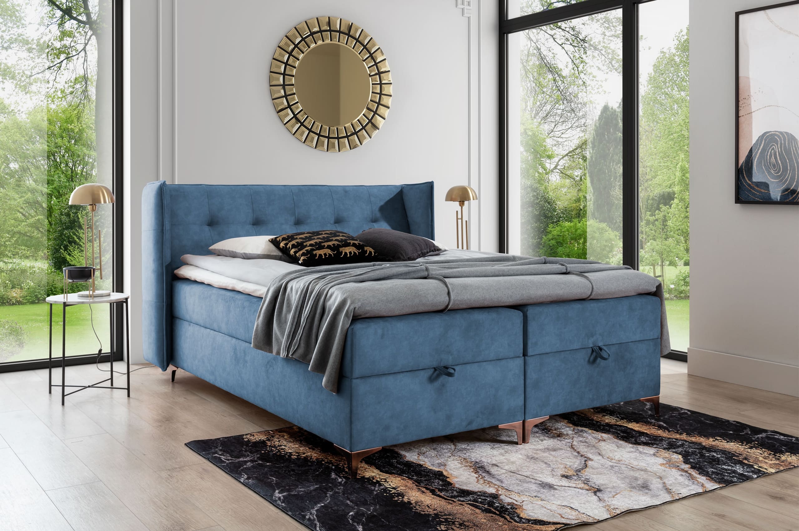 Das Boxspringbett "Elysium" ist ein Meisterstück der Schlafzimmermöbel, das Design, Funktionalität und erstklassigen Schlafkomfort geschickt kombiniert. Es verfügt über einen integrierten Bettkasten, der eine elegante Lösung für zusätzlichen Stauraum darstellt, perfekt, um Ihr Schlafzimmer frei von Unordnung zu halten. Im Herzen des "Elysium" liegt eine hochwertige Taschenfederkernmatratze, die für ihre hervorragende Anpassungsfähigkeit an die Konturen des Körpers und für die exzellente Druckverteilung bekannt ist. Dies gewährleistet ein Höchstmaß an Unterstützung und Komfort über die gesamte Liegefläche. Zur Komplettierung des luxuriösen Schlaferlebnisses gehört ein inkludierter Topper, der die Matratze schützt und gleichzeitig eine zusätzliche Schicht aus weichem, aber festem Komfort bietet. Mit dem "Elysium" Boxspringbett laden Sie Eleganz und Komfort in Ihr Schlafzimmer ein und schaffen einen Ort, an dem jede Nacht zur erholsamen Flucht wird.