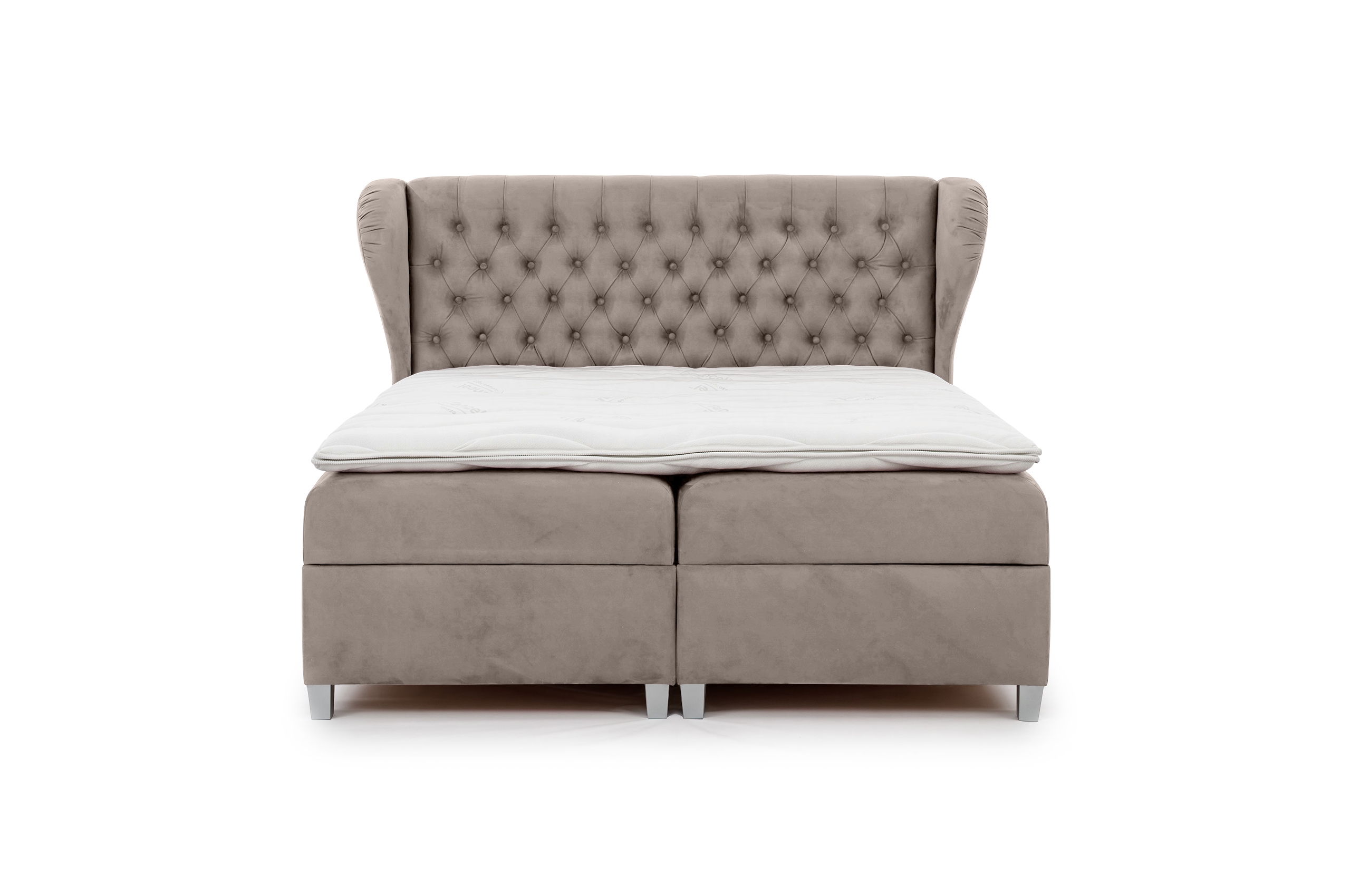 Das Boxspringbett "Harmony" ist eine Oase des Komforts für Ihr Schlafzimmer. Jedes Detail ist darauf ausgelegt, Ihnen die beste Voraussetzung für eine erholsame Nacht zu bieten. Ausgestattet mit einem praktischen Bettkasten, bietet es genügend Raum, um zusätzliche Bettwaren oder saisonale Kleidung bequem zu verstauen und Ihr Schlafzimmer ordentlich zu halten. Auf der Grundlage einer Taschenfederkernmatratze, die für ihre Fähigkeit bekannt ist, sich individuell dem Körper anzupassen und den Druck gleichmäßig zu verteilen, bietet das "Harmony" Boxspringbett eine erstklassige Unterstützung und punktgenaue Entlastung während des Schlafs. Dies wird durch einen inkludierten Topper ergänzt, der eine zusätzliche Komfortschicht bildet und ein weiches, aber stützendes Liegegefühl schafft. Das "Harmony" ist mehr als nur ein Bett es ist ein Versprechen für ungestörten Schlaf und Wohlbefinden, Nacht für Nacht.
