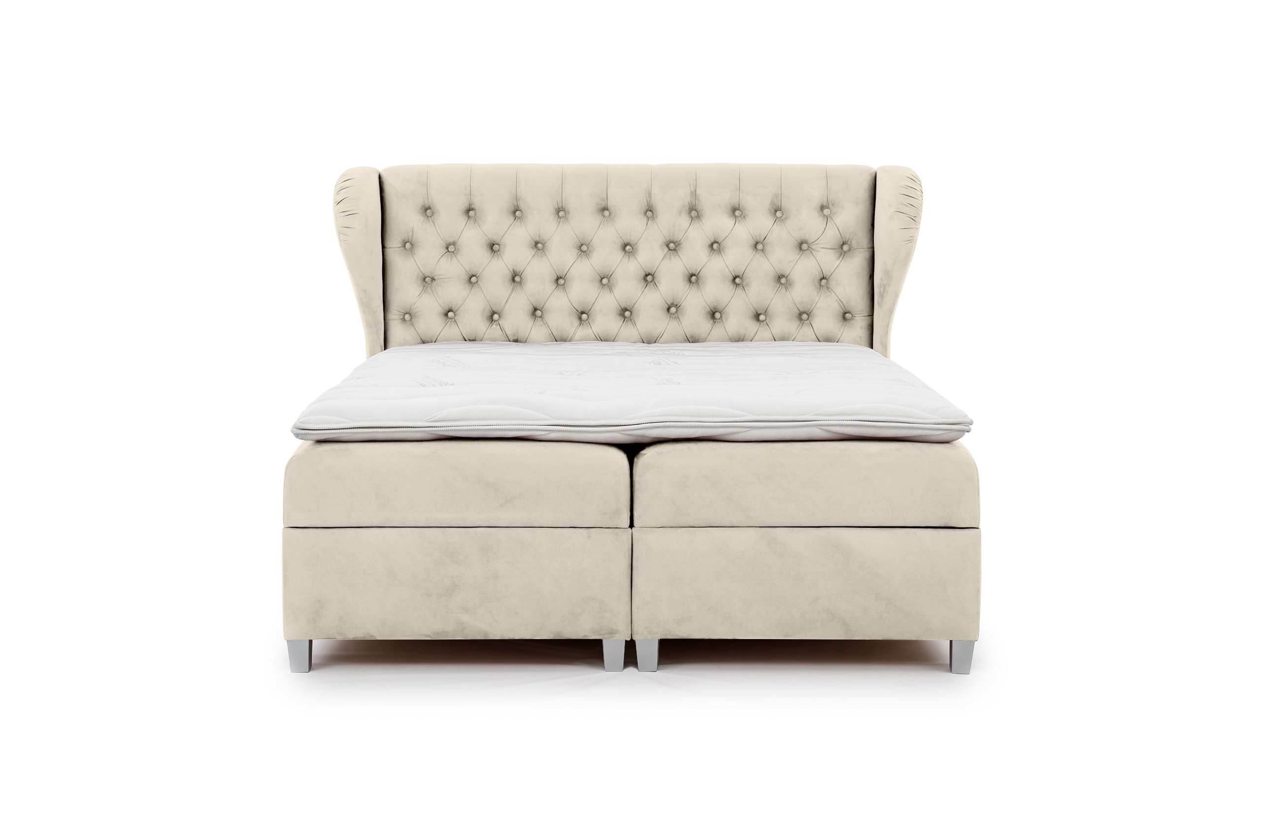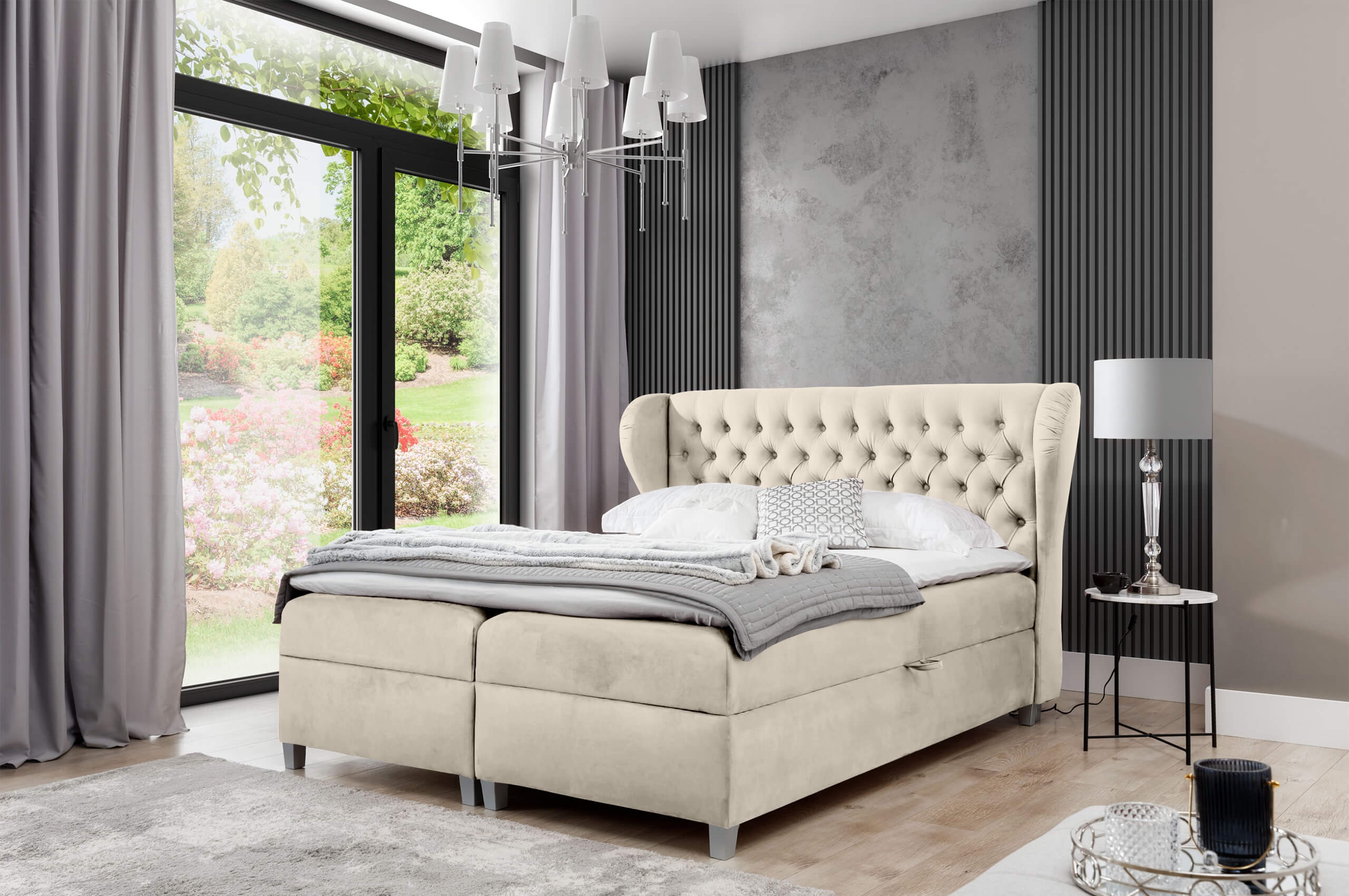 Das Boxspringbett "Harmony" ist eine Oase des Komforts für Ihr Schlafzimmer. Jedes Detail ist darauf ausgelegt, Ihnen die beste Voraussetzung für eine erholsame Nacht zu bieten. Ausgestattet mit einem praktischen Bettkasten, bietet es genügend Raum, um zusätzliche Bettwaren oder saisonale Kleidung bequem zu verstauen und Ihr Schlafzimmer ordentlich zu halten. Auf der Grundlage einer Taschenfederkernmatratze, die für ihre Fähigkeit bekannt ist, sich individuell dem Körper anzupassen und den Druck gleichmäßig zu verteilen, bietet das "Harmony" Boxspringbett eine erstklassige Unterstützung und punktgenaue Entlastung während des Schlafs. Dies wird durch einen inkludierten Topper ergänzt, der eine zusätzliche Komfortschicht bildet und ein weiches, aber stützendes Liegegefühl schafft. Das "Harmony" ist mehr als nur ein Bett es ist ein Versprechen für ungestörten Schlaf und Wohlbefinden, Nacht für Nacht.