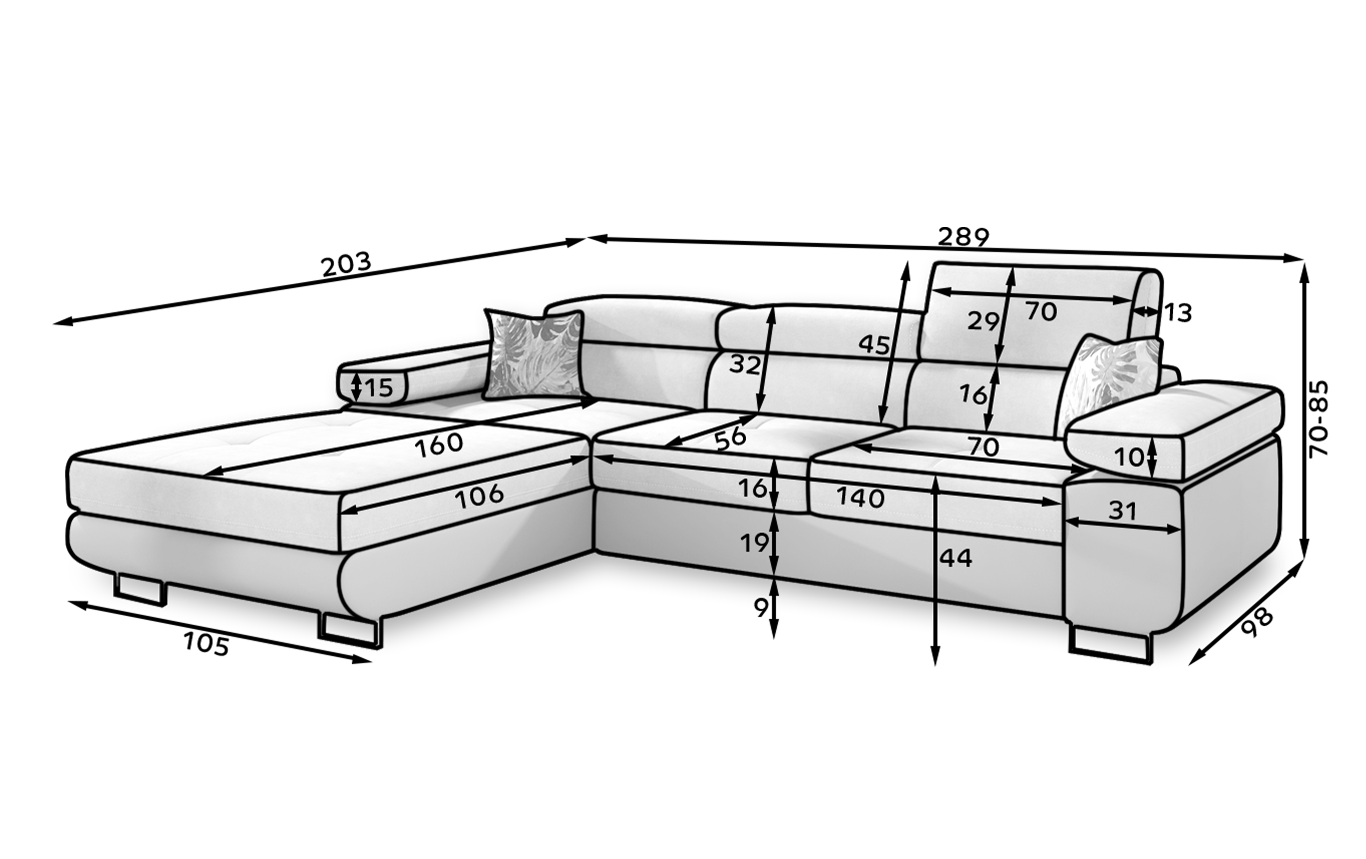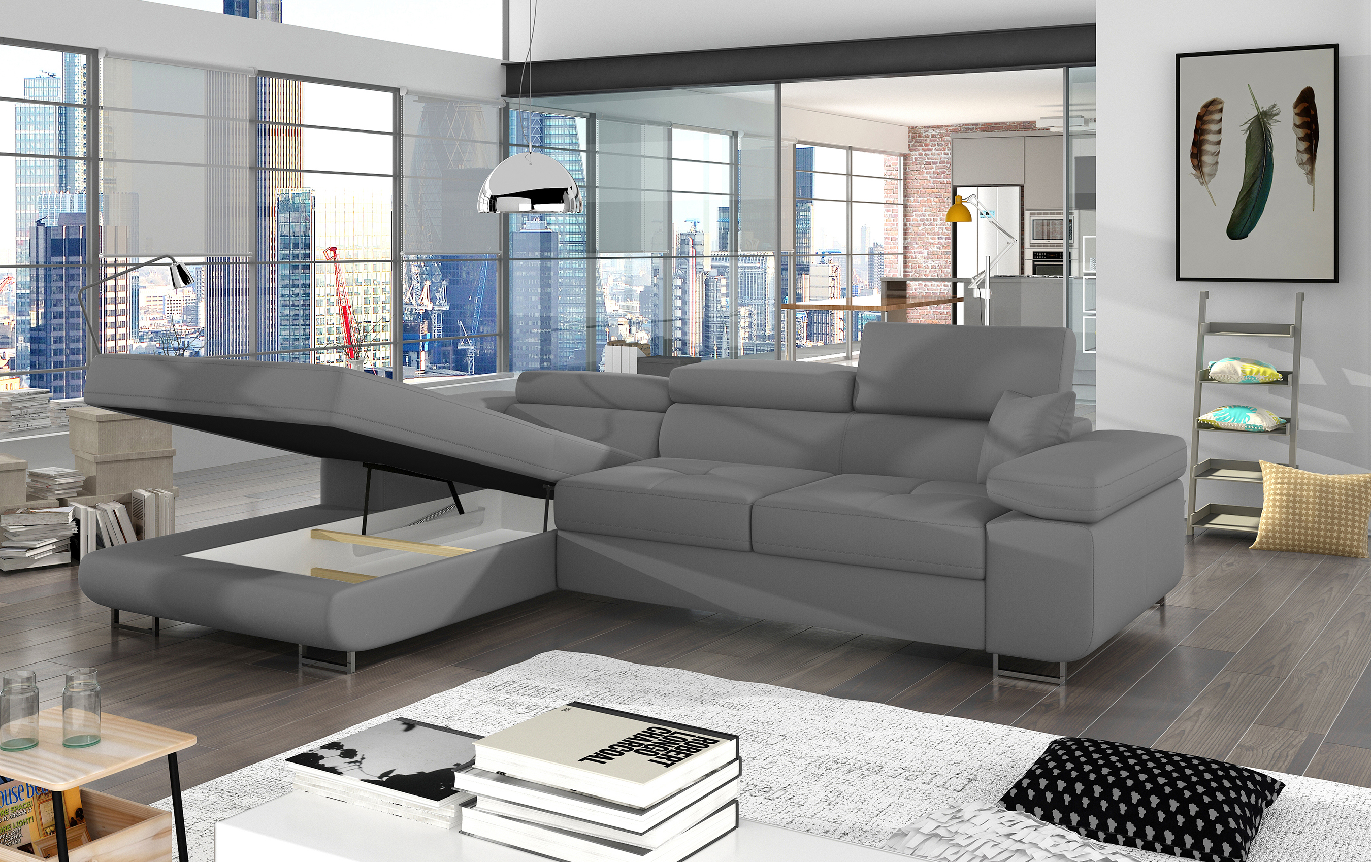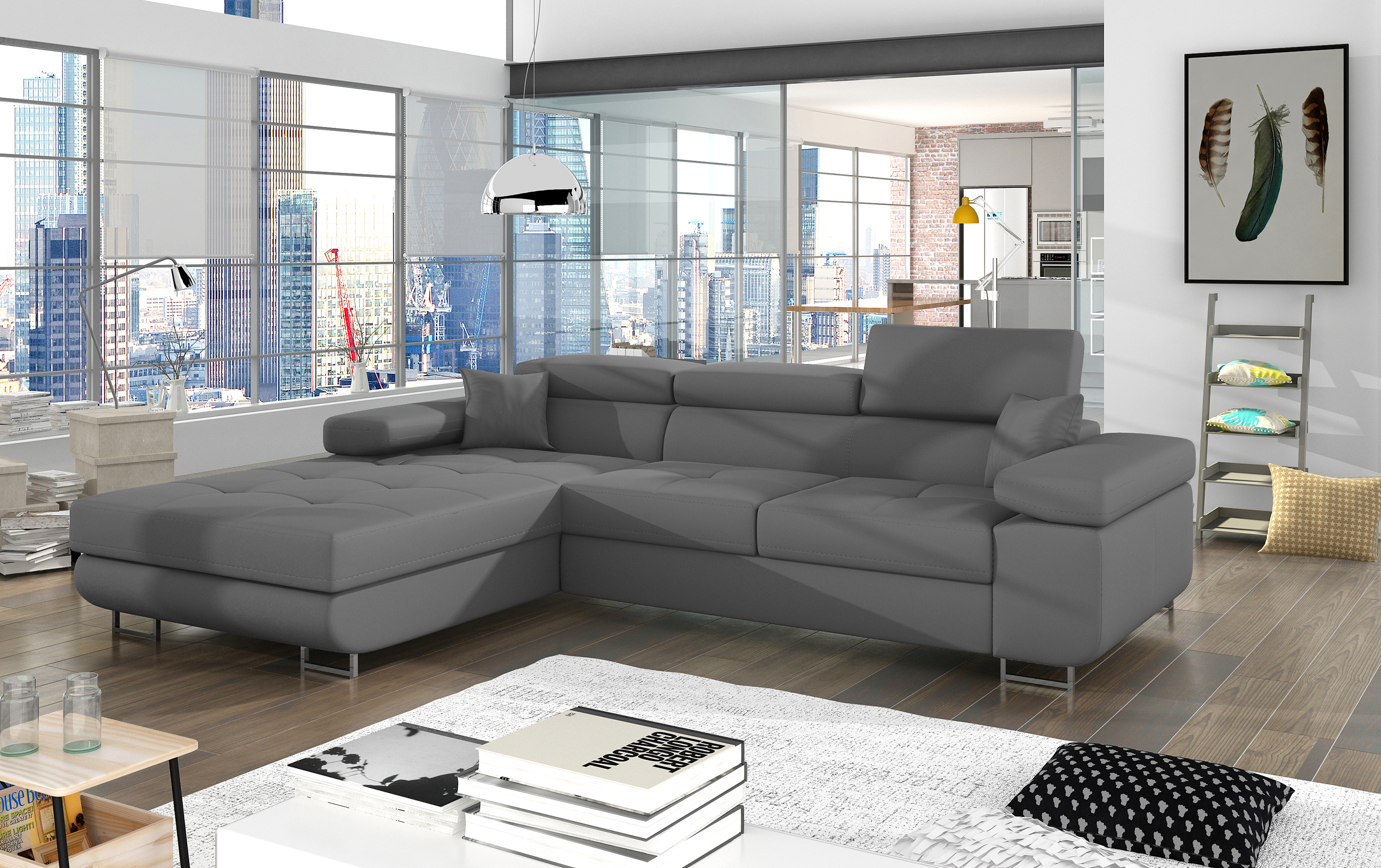 Das Ecksofa Amanda bietet eine stilvolle Kombination aus modernem Design und praktischen Funktionen. Der hochwertige Kunstlederbezug verleiht dem Sofa eine elegante Optik und ist dabei besonders pflegeleicht. Mit großzügigen Maßen von 289 x 203 x 85 cm lädt Amanda zum Entspannen ein und bietet Platz für die ganze Familie.