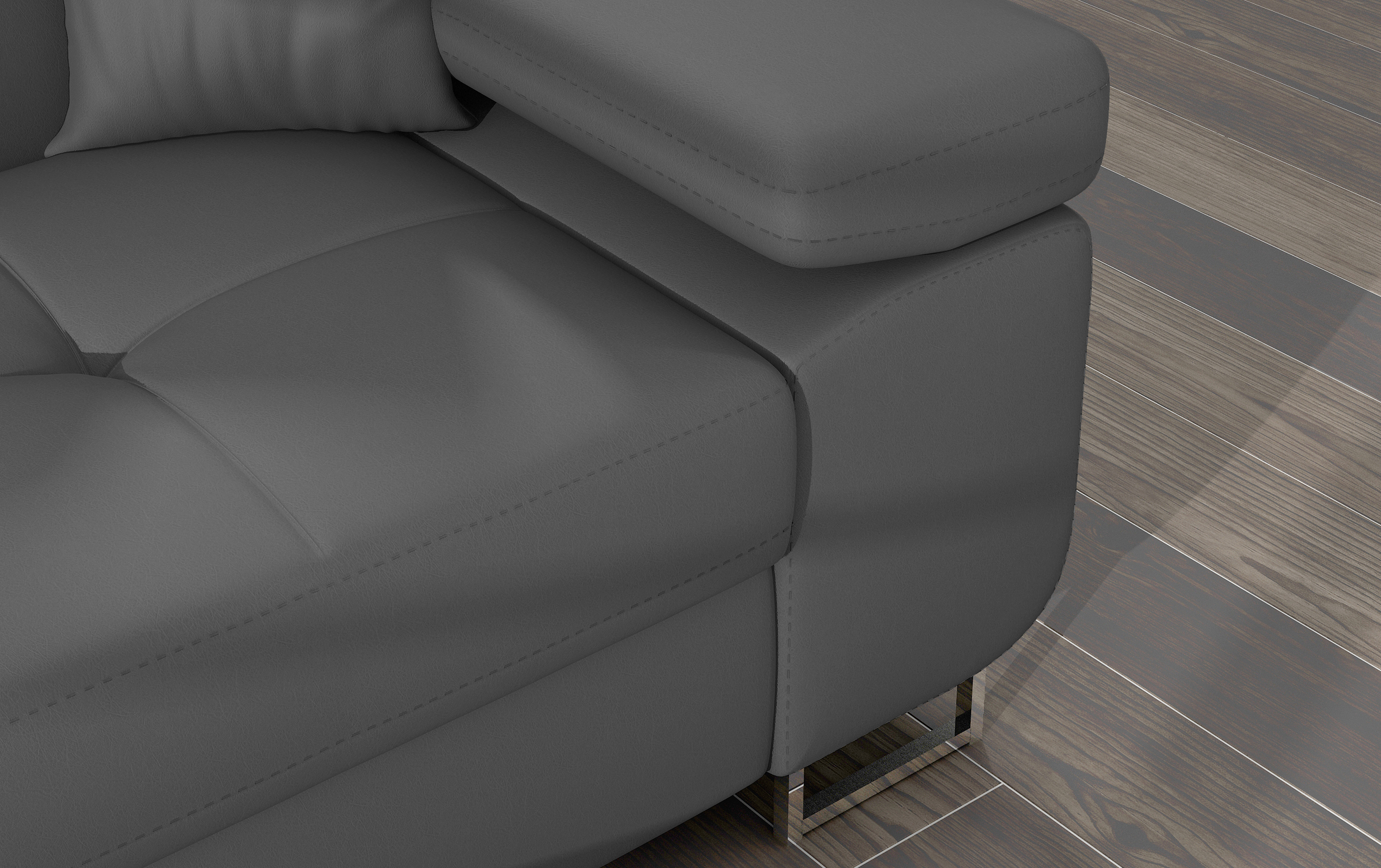 Die Farb- und Seitenwahl ermöglicht eine individuelle Anpassung an Ihr Wohnambiente. Die stabile Konstruktion aus Massivholz und die verchromten Metallfüße sorgen für Langlebigkeit und einen modernen Look. Elegante Steppnähte runden das Design ab und machen Amanda zu einem Highlight in Ihrem Wohnzimmer.