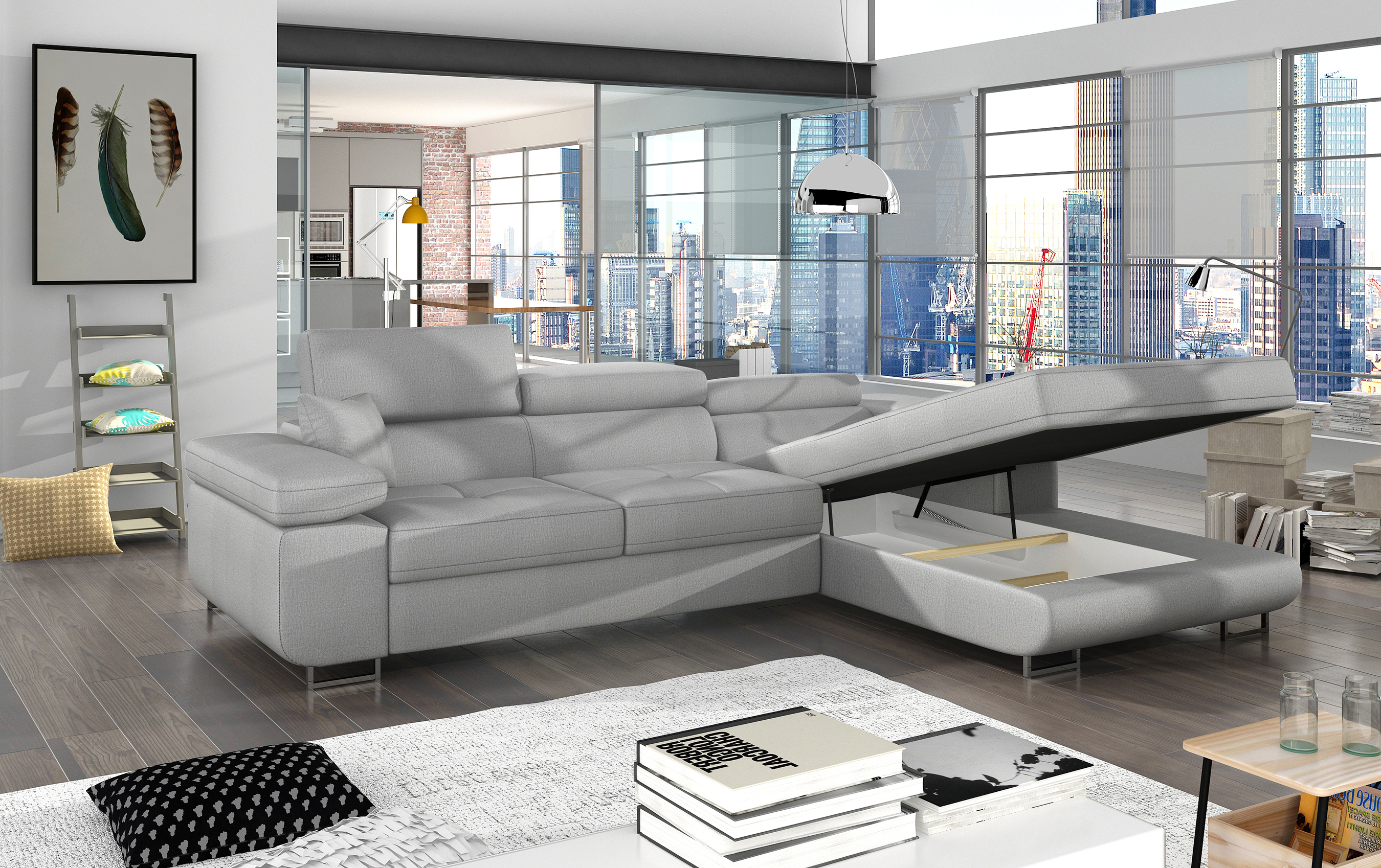 - L-Form Sofa mit Schlaffunktion und Bettkasten