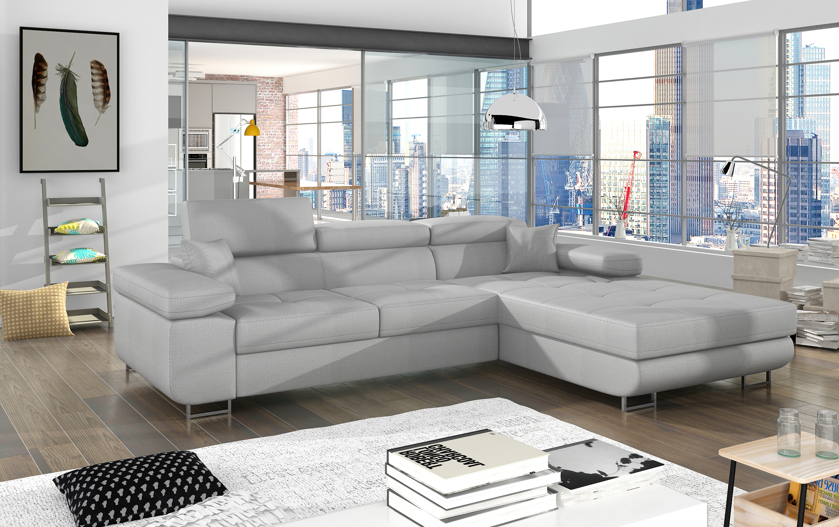 Die praktische Schlaffunktion (123 x 210 cm) lässt sich dank des Dolphin-Mechanismus schnell und unkompliziert nutzen und bietet Gästen eine bequeme Schlafmöglichkeit. Der geräumige Bettkasten sorgt für zusätzlichen Stauraum und hält Decken oder Kissen stets griffbereit.