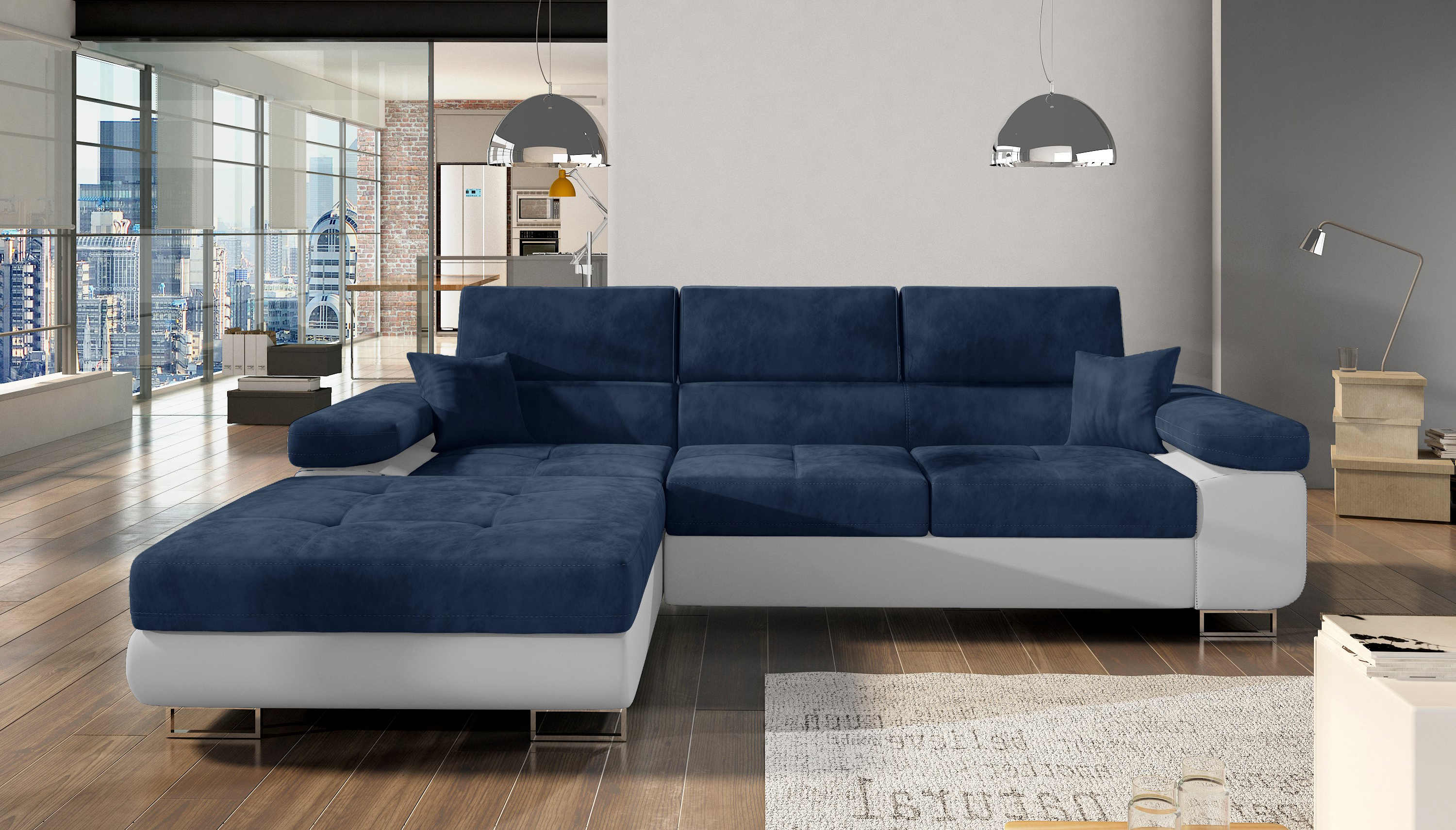 Entdecken Sie das elegante Ecksofa Amanda - die perfekte Wahl für Ihr Wohnzimmer! Verfügbar in einer Vielzahl von Farben und Stoffen, passt es sich Ihrem individuellen Stil an. Mit der praktischen Kopfteilverstellung, dem integrierten Bettkasten und der Schlaffunktion bietet das Amanda Ecksofa höchsten Komfort und Funktionalität. Verwandeln Sie es im Handumdrehen in eine gemütliche Schlafgelegenheit für Übernachtungsgäste und nutzen Sie den Bettkasten für zusätzlichen Stauraum. Ergänzen Sie Ihre Wohnlandschaft um dieses stilvolle Ecksofa und entdecken Sie weitere Modelle in unserem Shop. Machen Sie Amanda zum Mittelpunkt Ihres Wohnzimmers und genießen Sie Komfort und Funktionalität in einem Möbelstück.