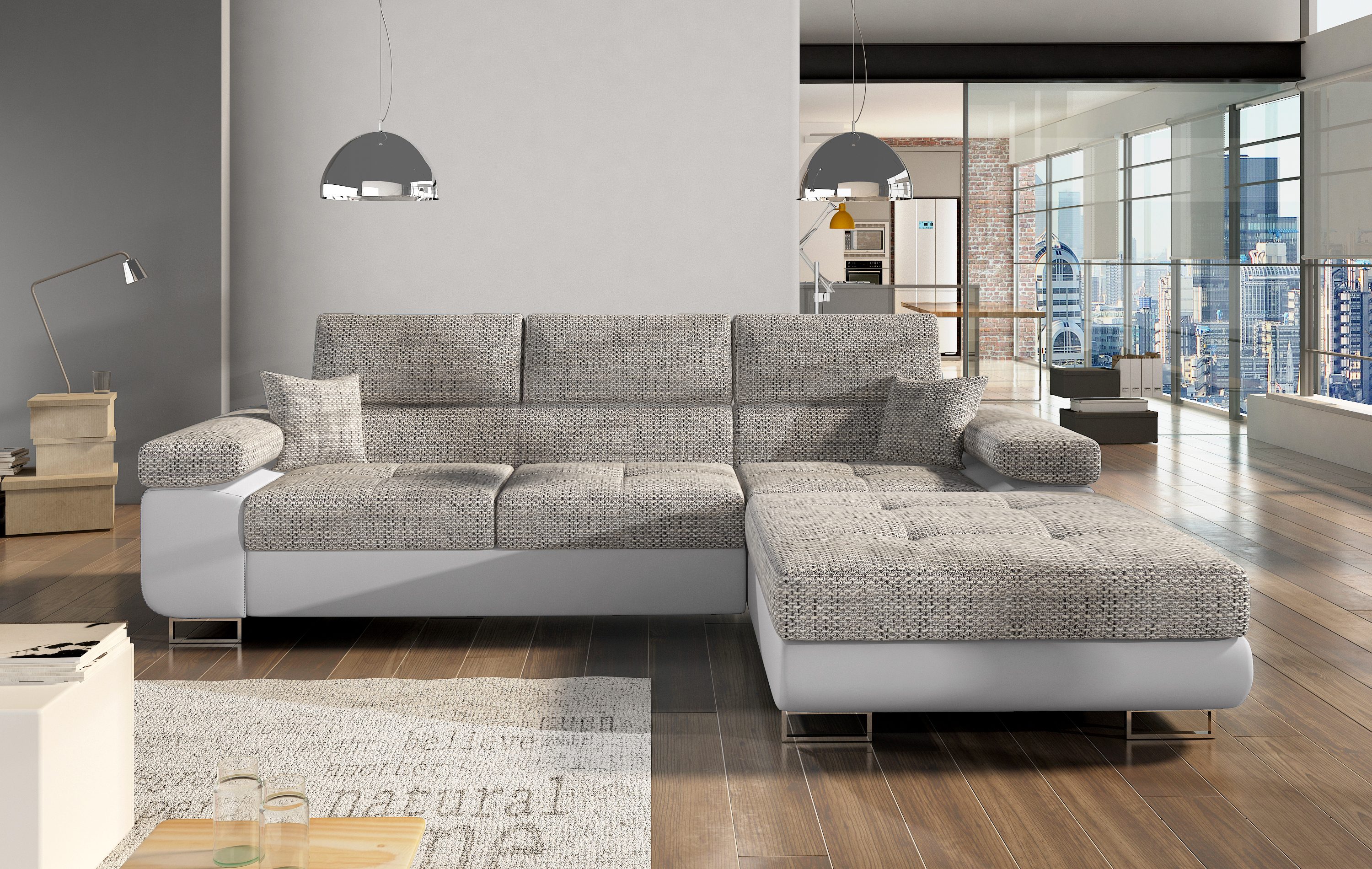 Entdecken Sie das elegante Ecksofa Amanda - die perfekte Wahl für Ihr Wohnzimmer! Verfügbar in einer Vielzahl von Farben und Stoffen, passt es sich Ihrem individuellen Stil an. Mit der praktischen Kopfteilverstellung, dem integrierten Bettkasten und der Schlaffunktion bietet das Amanda Ecksofa höchsten Komfort und Funktionalität. Verwandeln Sie es im Handumdrehen in eine gemütliche Schlafgelegenheit für Übernachtungsgäste und nutzen Sie den Bettkasten für zusätzlichen Stauraum. Ergänzen Sie Ihre Wohnlandschaft um dieses stilvolle Ecksofa und entdecken Sie weitere Modelle in unserem Shop. Machen Sie Amanda zum Mittelpunkt Ihres Wohnzimmers und genießen Sie Komfort und Funktionalität in einem Möbelstück.