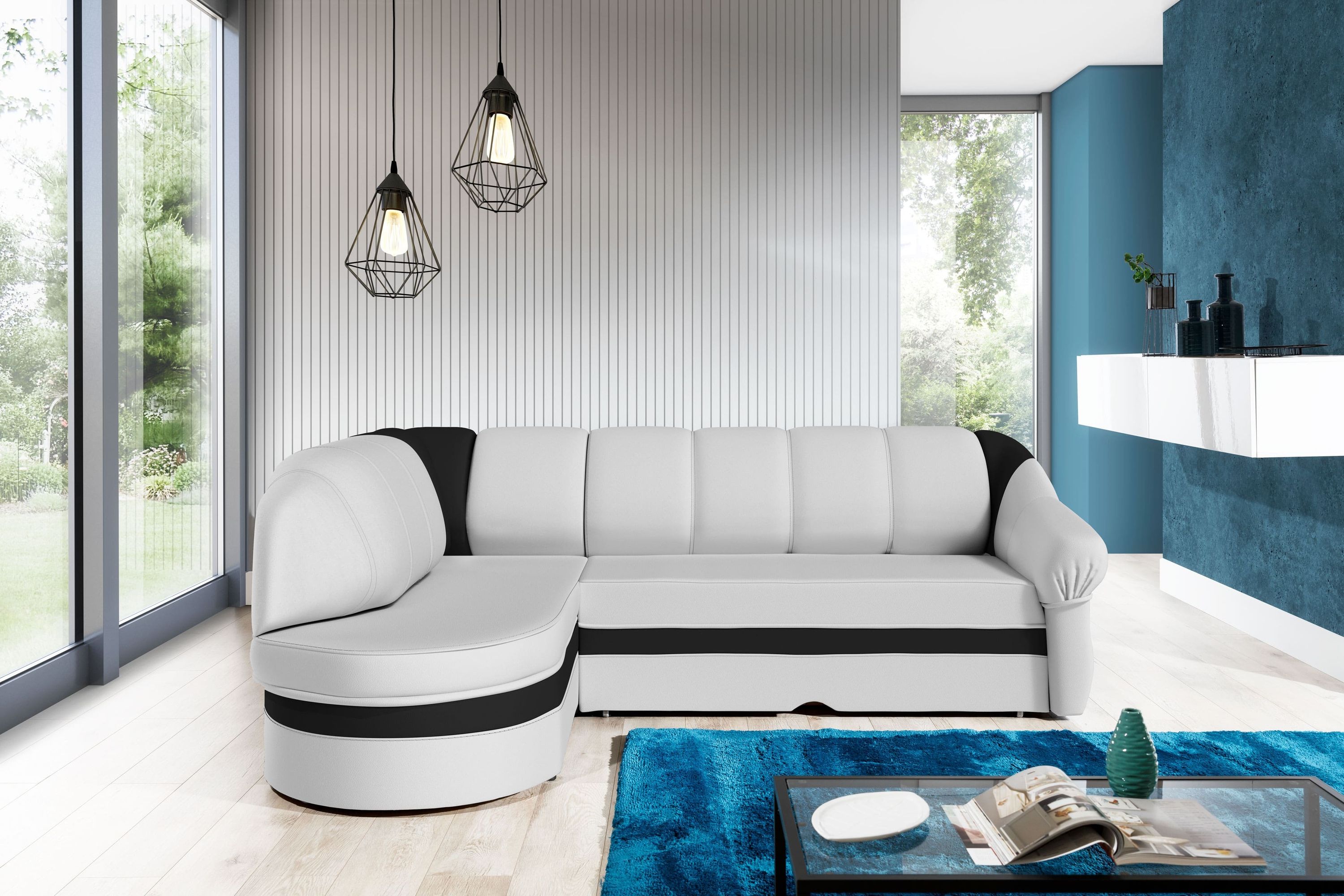 Tauchen Sie ein in modernen Komfort und zeitloses Design mit dem Ecksofa Ben. Dieses elegante Möbelstück ist nicht nur eine Bereicherung für Ihr Wohnzimmer, sondern auch äußerst funktional. Mit seiner praktischen Bettfunktion und dem integrierten Bettkasten bietet das Ecksofa Ben nicht nur gemütliche Sitzplätze, sondern auch eine komfortable Schlafmöglichkeit für Übernachtungsgäste. Die hochwertige Wellenunterfederung sorgt dabei für optimalen Liegekomfort, egal ob beim Entspannen oder Schlafen. Ein besonderes Highlight des Ecksofas Ben ist seine einzigartige Farbkombination: Immer bestehend aus zwei harmonisch aufeinander abgestimmten Farben verleiht es Ihrem Wohnzimmer einen modernen und ansprechenden Look. Erleben Sie die perfekte Verbindung von Stil und Funktionalität mit dem Ecksofa Ben und machen Sie Ihr Zuhause zu einem Ort der Entspannung und Gemütlichkeit.