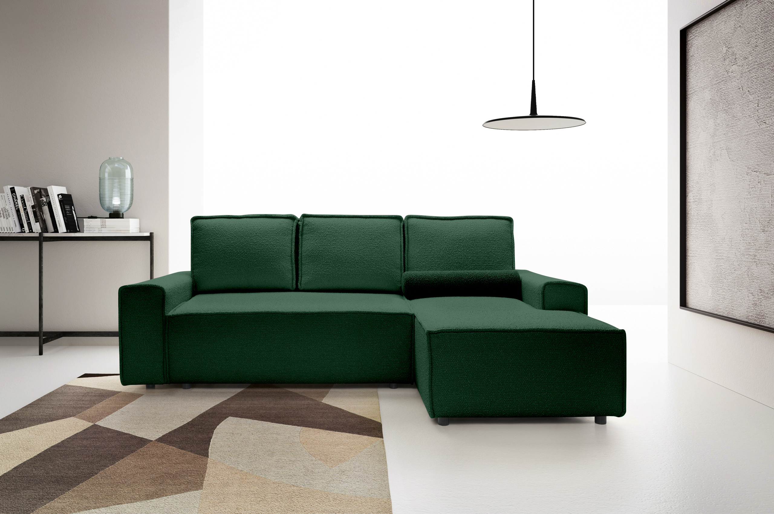Ecksofa Damian in Bouclé Stoff und Schlaffunktion