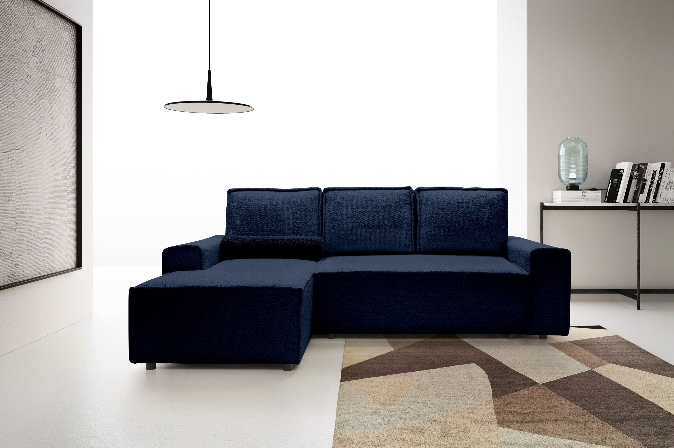 Ecksofa Damian in Bouclé Stoff und Schlaffunktion