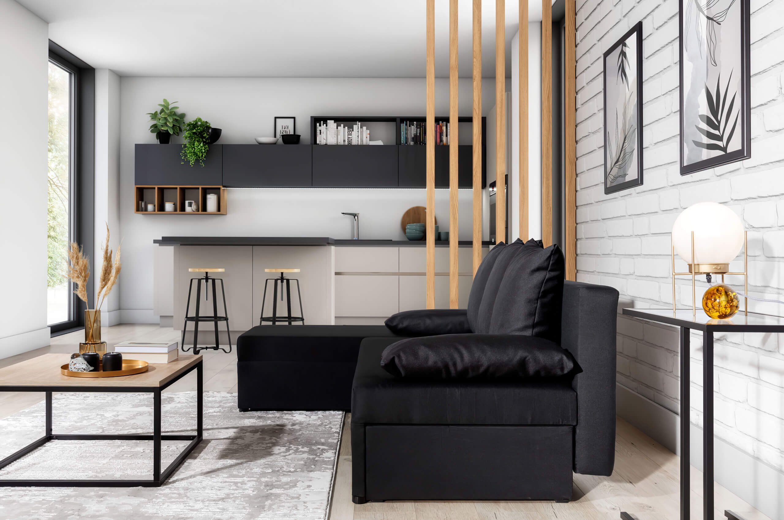 Ecksofa Dino mit Schlaffunktion, beidseitig montierbar