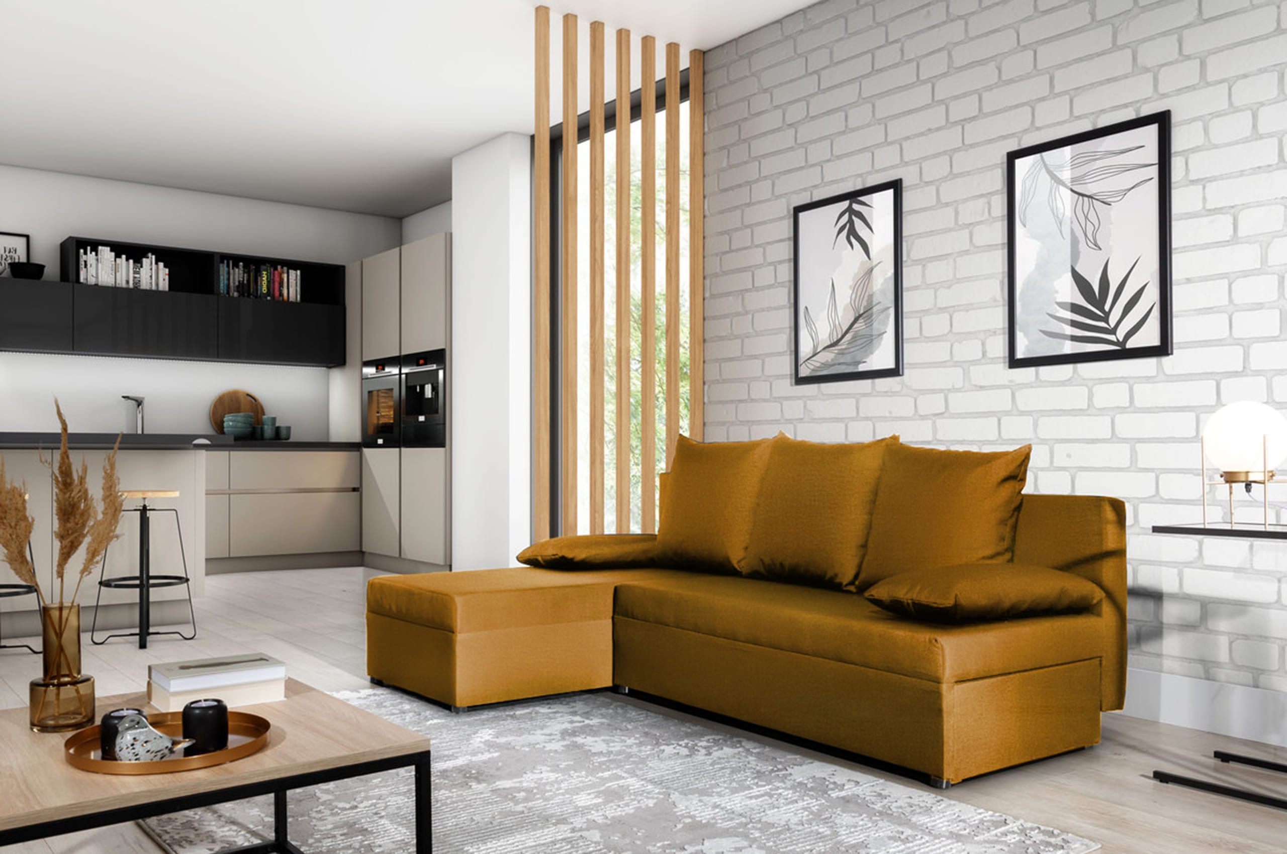Ecksofa Dino mit Schlaffunktion, beidseitig montierbar