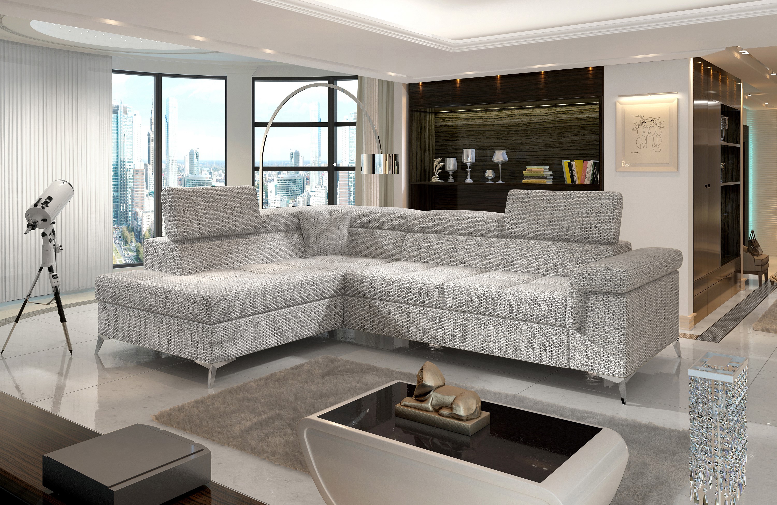 Entdecken Sie das Ecksofa Comfort - die perfekte Kombination aus Stil und Funktionalität für Ihr Zuhause! Verfügbar in einer Vielzahl von Farben und Stoffen, passt es sich Ihrem individuellen Geschmack an. Mit einer praktischen Schlaffunktion, einem integrierten Bettkasten und einer einstellbaren Kopfstütze bietet das Comfort Ecksofa höchsten Komfort und Flexibilität. Verwandeln Sie es im Handumdrehen in eine gemütliche Schlafgelegenheit für Übernachtungsgäste und nutzen Sie den Bettkasten für zusätzlichen Stauraum. Ergänzen Sie Ihre Wohnlandschaft um dieses stilvolle Ecksofa und entdecken Sie weitere Modelle in unserem Shop. Machen Sie Comfort zum Mittelpunkt Ihres Wohnzimmers und genießen Sie Komfort und Funktionalität in einem Möbelstück.