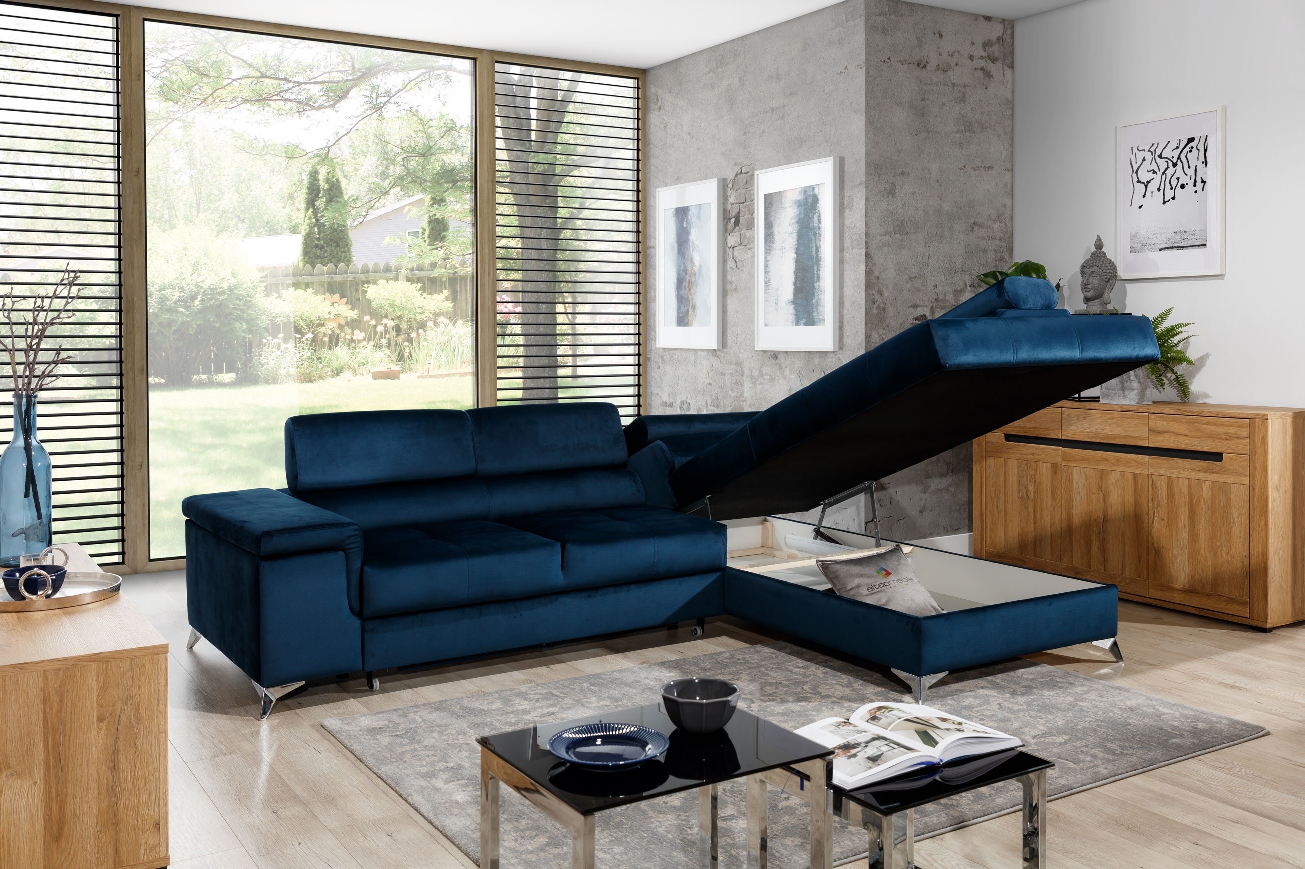 Entdecken Sie das Ecksofa Comfort - die perfekte Kombination aus Stil und Funktionalität für Ihr Zuhause! Verfügbar in einer Vielzahl von Farben und Stoffen, passt es sich Ihrem individuellen Geschmack an. Mit einer praktischen Schlaffunktion, einem integrierten Bettkasten und einer einstellbaren Kopfstütze bietet das Comfort Ecksofa höchsten Komfort und Flexibilität. Verwandeln Sie es im Handumdrehen in eine gemütliche Schlafgelegenheit für Übernachtungsgäste und nutzen Sie den Bettkasten für zusätzlichen Stauraum. Ergänzen Sie Ihre Wohnlandschaft um dieses stilvolle Ecksofa und entdecken Sie weitere Modelle in unserem Shop. Machen Sie Comfort zum Mittelpunkt Ihres Wohnzimmers und genießen Sie Komfort und Funktionalität in einem Möbelstück.