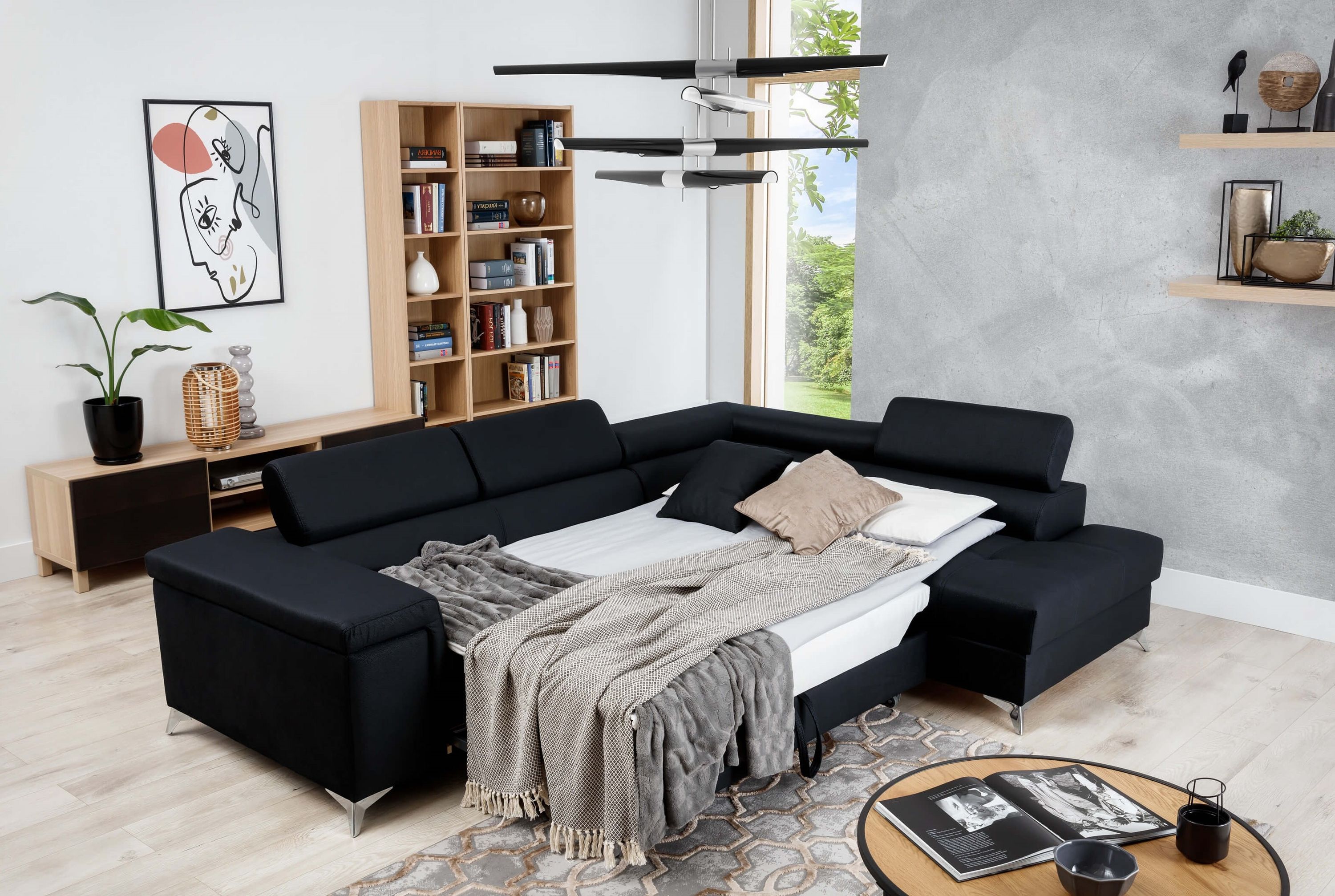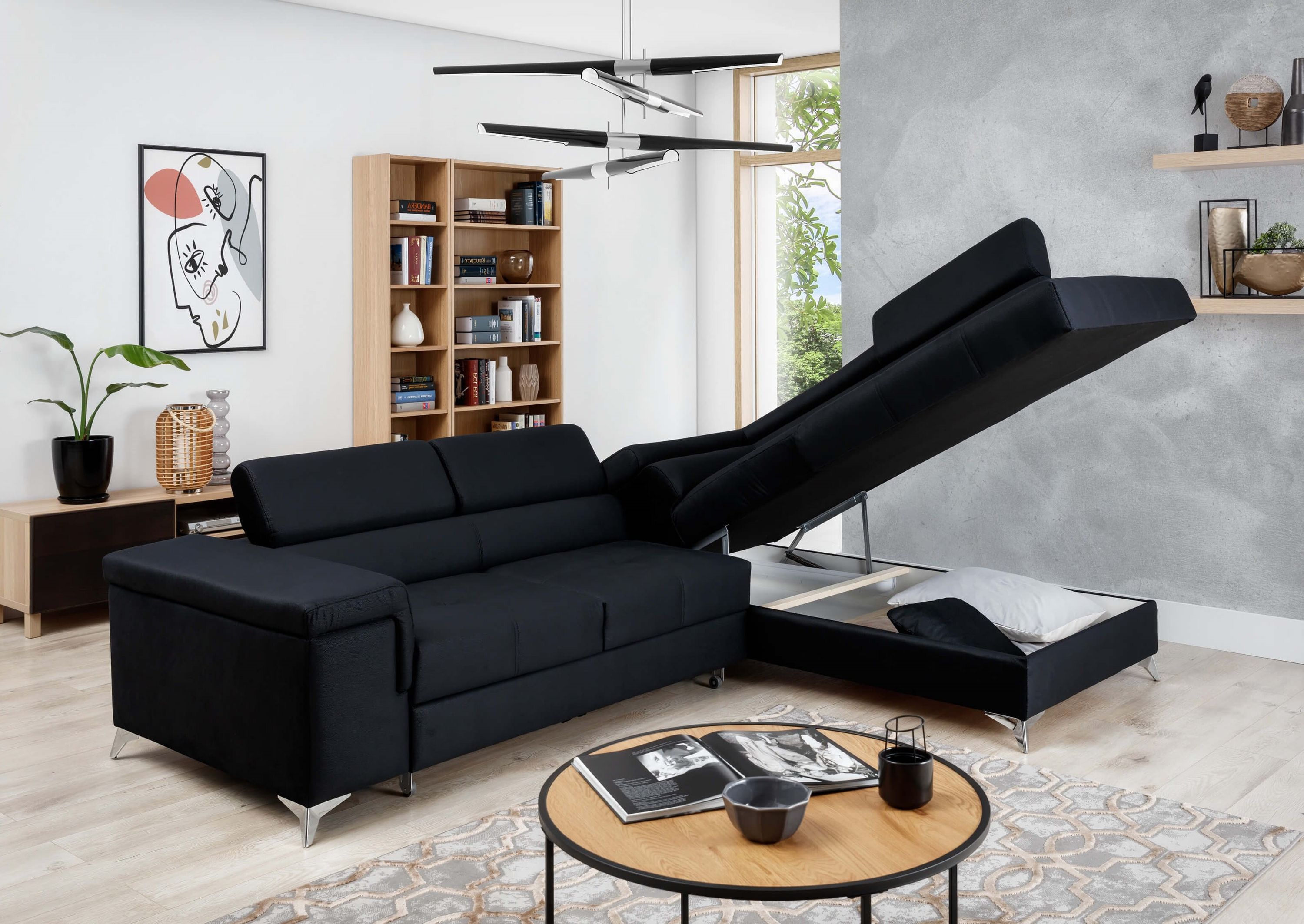 Entdecken Sie das Ecksofa Comfort - die perfekte Kombination aus Stil und Funktionalität für Ihr Zuhause! Verfügbar in einer Vielzahl von Farben und Stoffen, passt es sich Ihrem individuellen Geschmack an. Mit einer praktischen Schlaffunktion, einem integrierten Bettkasten und einer einstellbaren Kopfstütze bietet das Comfort Ecksofa höchsten Komfort und Flexibilität. Verwandeln Sie es im Handumdrehen in eine gemütliche Schlafgelegenheit für Übernachtungsgäste und nutzen Sie den Bettkasten für zusätzlichen Stauraum. Ergänzen Sie Ihre Wohnlandschaft um dieses stilvolle Ecksofa und entdecken Sie weitere Modelle in unserem Shop. Machen Sie Comfort zum Mittelpunkt Ihres Wohnzimmers und genießen Sie Komfort und Funktionalität in einem Möbelstück.