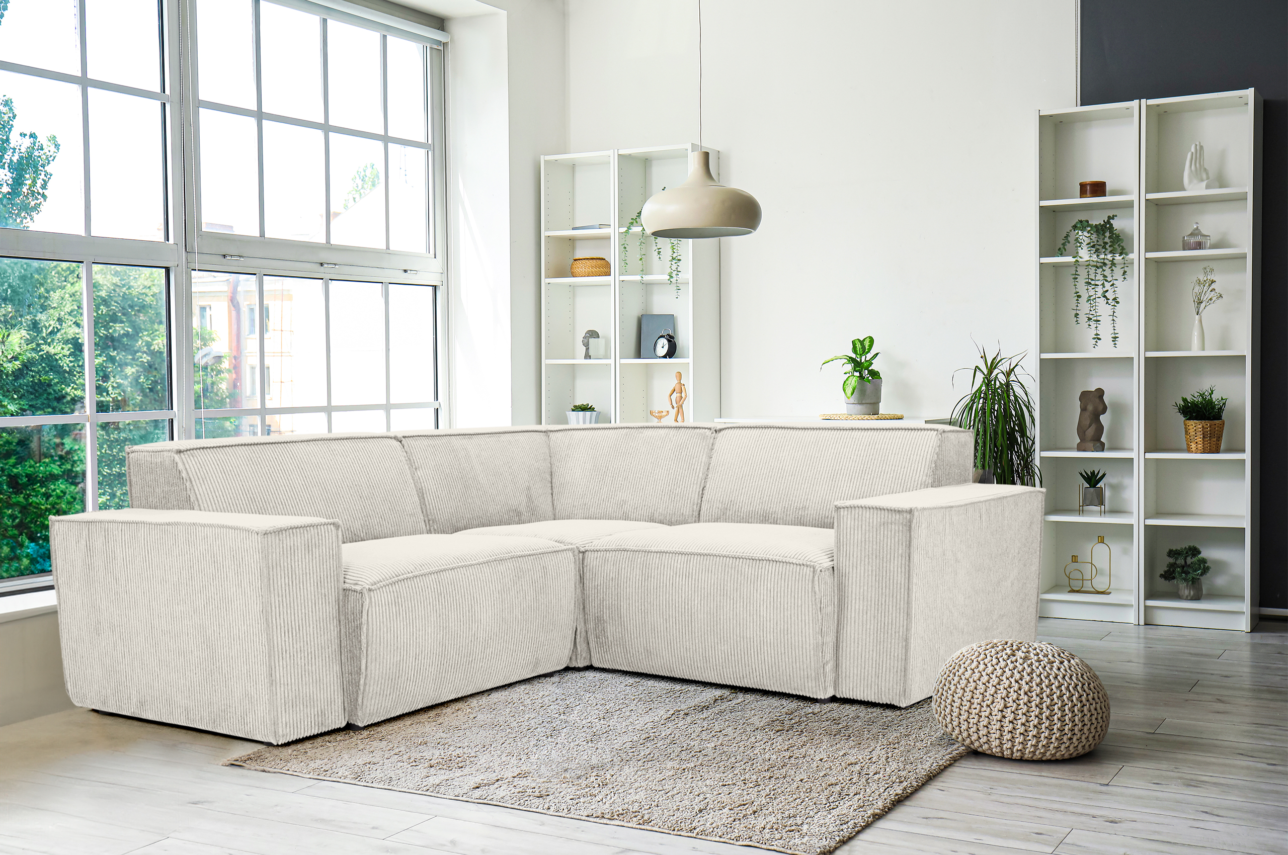 Unser modulares Ecksofa wird das Herzstück Ihres Wohnzimmers sein. Gefertigt aus hochwertigem Cordbezug aus Polyester strahlt es Eleganz und Komfort aus. Die kleinen, unauffälligen Kunststofffüße sorgen für Stabilität und Leichtigkeit in Ihrem Raum. Mit einer großzügigen Breite und Tiefe von jeweils 200 cm bietet dieses Sofa ausreichend Platz für Sie und Ihre Gäste. Die Sitzfläche in einer komfortablen Höhe von 43 cm lädt zum Entspannen und Verweilen ein. Wählen Sie aus einer Palette von Farben und Stoffen, um Ihren persönlichen Stil zu unterstreichen. Erweitern Sie Ihre Wohnlandschaft nach Belieben und schaffen Sie eine Oase der Gemütlichkeit, die zum Verweilen einlädt.