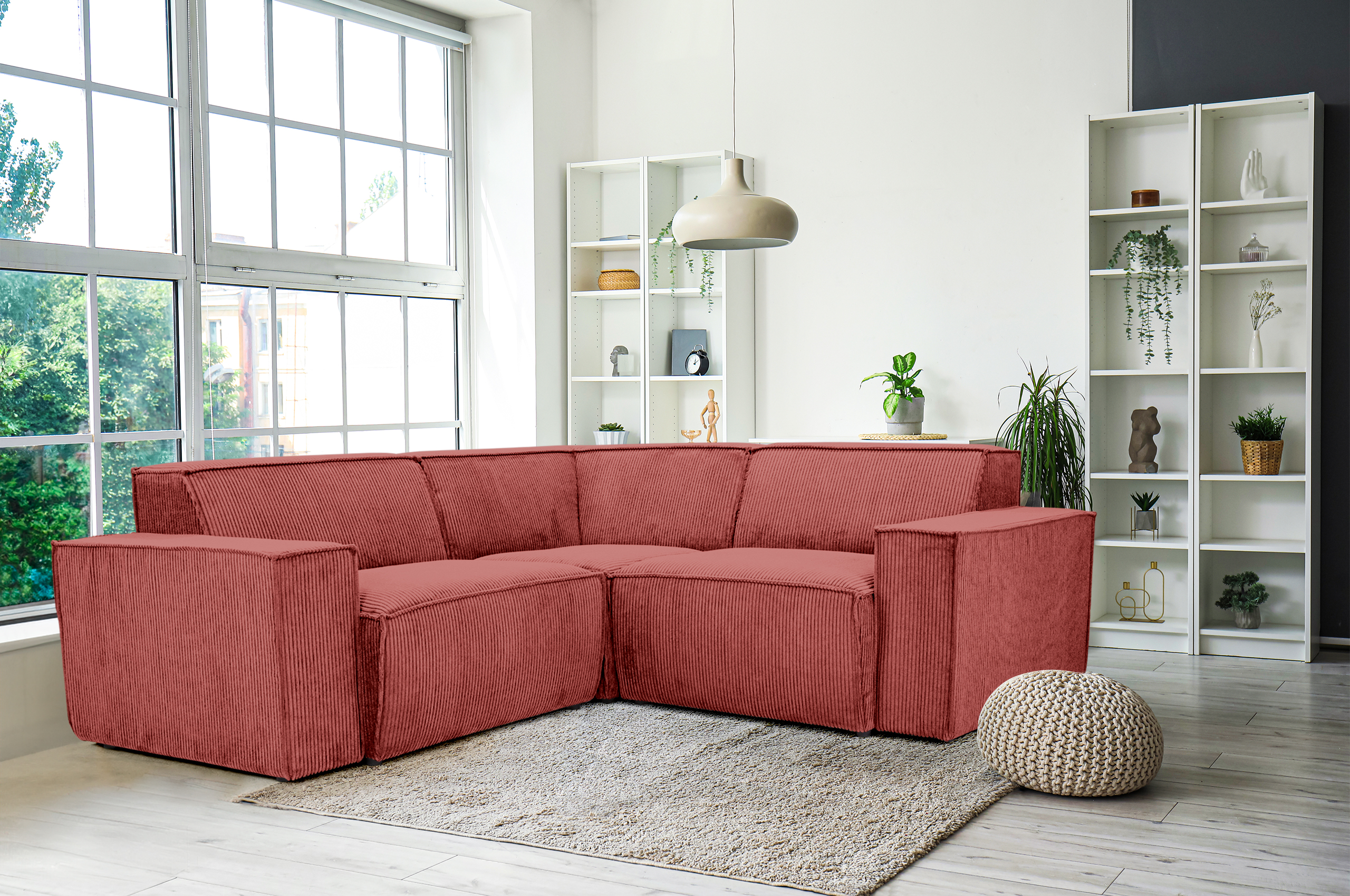 Unser modulares Ecksofa wird das Herzstück Ihres Wohnzimmers sein. Gefertigt aus hochwertigem Cordbezug aus Polyester strahlt es Eleganz und Komfort aus. Die kleinen, unauffälligen Kunststofffüße sorgen für Stabilität und Leichtigkeit in Ihrem Raum. Mit einer großzügigen Breite und Tiefe von jeweils 200 cm bietet dieses Sofa ausreichend Platz für Sie und Ihre Gäste. Die Sitzfläche in einer komfortablen Höhe von 43 cm lädt zum Entspannen und Verweilen ein. Wählen Sie aus einer Palette von Farben und Stoffen, um Ihren persönlichen Stil zu unterstreichen. Erweitern Sie Ihre Wohnlandschaft nach Belieben und schaffen Sie eine Oase der Gemütlichkeit, die zum Verweilen einlädt.