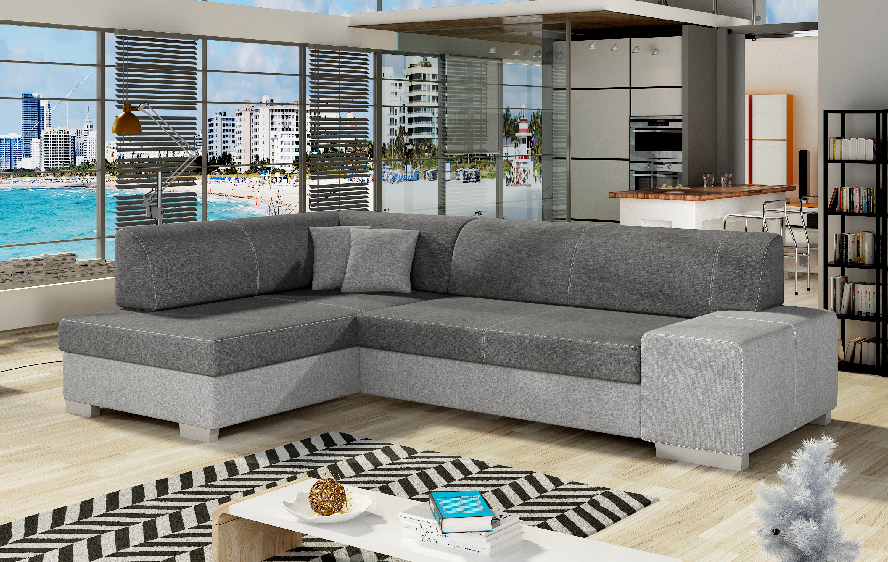 Das Ecksofa Fabrizio ist die perfekte Lösung für Ihr Wohnzimmer. Mit seiner Bettfunktion und dem geräumigen Bettkasten bietet es Ihnen nicht nur eine gemütliche Sitzgelegenheit, sondern auch einen komfortablen Schlafplatz für Übernachtungsgäste. Die Wellenunterfederung und die atmungsaktive Polyätherschaum-Polsterung sorgen für einen angenehmen Sitz- und Liegekomfort. Die weichen und elastischen Sitze laden zum Entspannen ein. Das einfache Umbausystem ermöglicht es Ihnen, das Sofa schnell und unkompliziert in eine große Liegefläche zu verwandeln. Der Bettkasten in der Ottomane bietet zusätzlichen Stauraum für Decken und Kissen. Die gepolsterte Rückseite ermöglicht es Ihnen, das Sofa frei im Raum zu platzieren. Verfügbar in verschiedenen Farben und Stoffen, können Sie das Ecksofa Fabrizio perfekt an Ihren Einrichtungsstil anpassen und Ihrem Wohnzimmer eine gemütliche Atmosphäre verleihen.