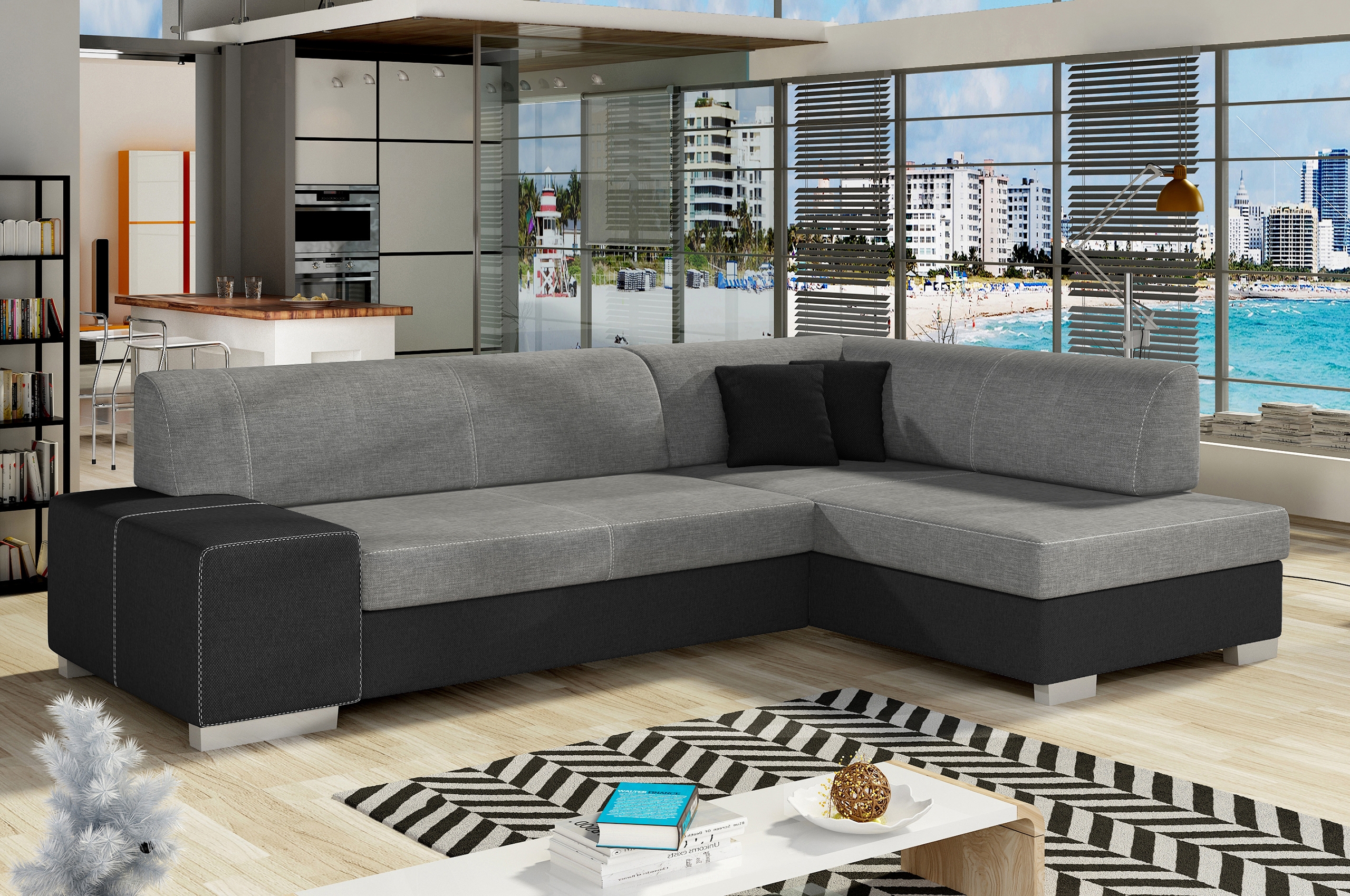 Das Ecksofa Fabrizio ist die perfekte Lösung für Ihr Wohnzimmer. Mit seiner Bettfunktion und dem geräumigen Bettkasten bietet es Ihnen nicht nur eine gemütliche Sitzgelegenheit, sondern auch einen komfortablen Schlafplatz für Übernachtungsgäste. Die Wellenunterfederung und die atmungsaktive Polyätherschaum-Polsterung sorgen für einen angenehmen Sitz- und Liegekomfort. Die weichen und elastischen Sitze laden zum Entspannen ein. Das einfache Umbausystem ermöglicht es Ihnen, das Sofa schnell und unkompliziert in eine große Liegefläche zu verwandeln. Der Bettkasten in der Ottomane bietet zusätzlichen Stauraum für Decken und Kissen. Die gepolsterte Rückseite ermöglicht es Ihnen, das Sofa frei im Raum zu platzieren. Verfügbar in verschiedenen Farben und Stoffen, können Sie das Ecksofa Fabrizio perfekt an Ihren Einrichtungsstil anpassen und Ihrem Wohnzimmer eine gemütliche Atmosphäre verleihen.
