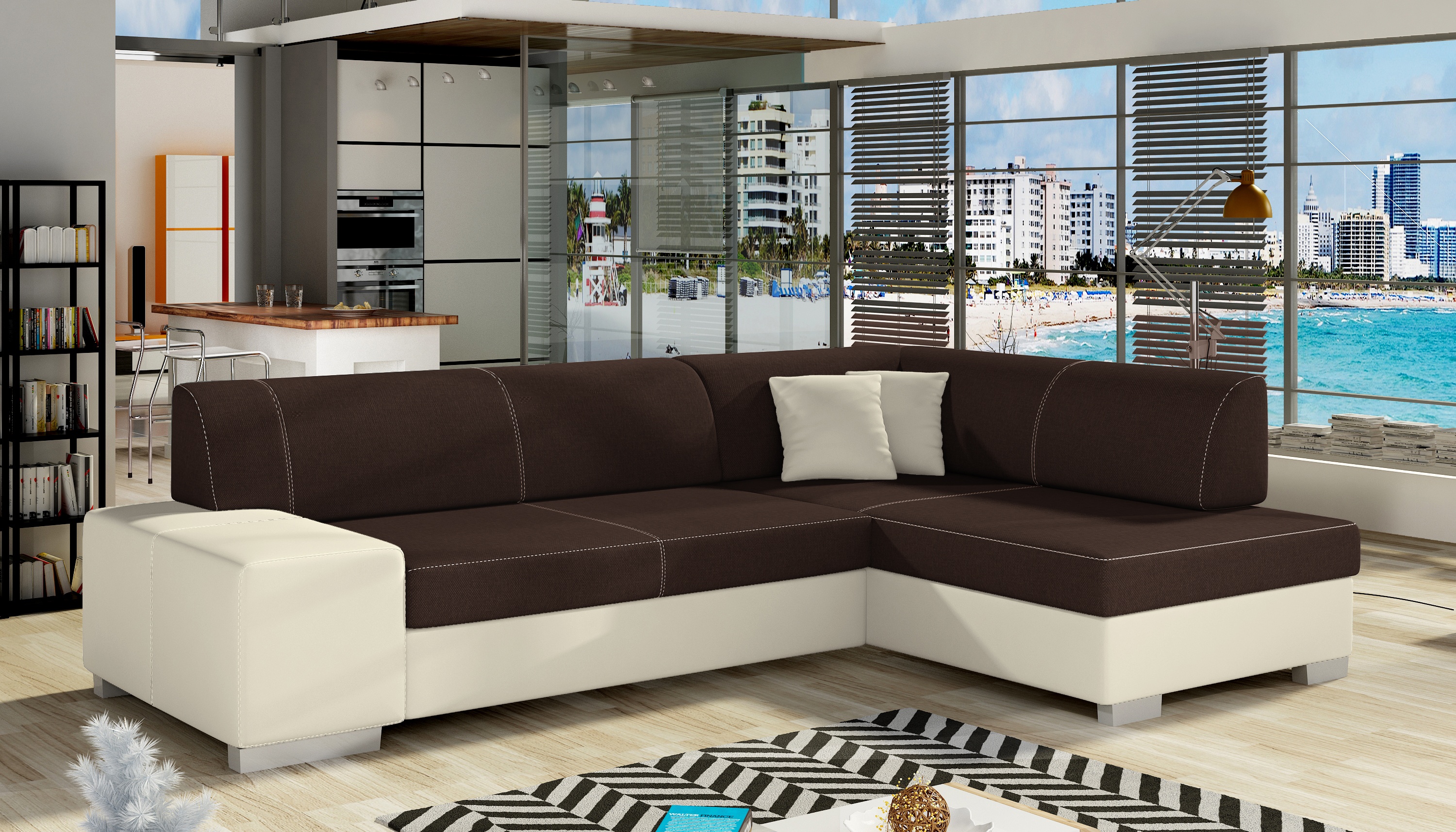 Das Ecksofa Fabrizio ist die perfekte Lösung für Ihr Wohnzimmer. Mit seiner Bettfunktion und dem geräumigen Bettkasten bietet es Ihnen nicht nur eine gemütliche Sitzgelegenheit, sondern auch einen komfortablen Schlafplatz für Übernachtungsgäste. Die Wellenunterfederung und die atmungsaktive Polyätherschaum-Polsterung sorgen für einen angenehmen Sitz- und Liegekomfort. Die weichen und elastischen Sitze laden zum Entspannen ein. Das einfache Umbausystem ermöglicht es Ihnen, das Sofa schnell und unkompliziert in eine große Liegefläche zu verwandeln. Der Bettkasten in der Ottomane bietet zusätzlichen Stauraum für Decken und Kissen. Die gepolsterte Rückseite ermöglicht es Ihnen, das Sofa frei im Raum zu platzieren. Verfügbar in verschiedenen Farben und Stoffen, können Sie das Ecksofa Fabrizio perfekt an Ihren Einrichtungsstil anpassen und Ihrem Wohnzimmer eine gemütliche Atmosphäre verleihen.