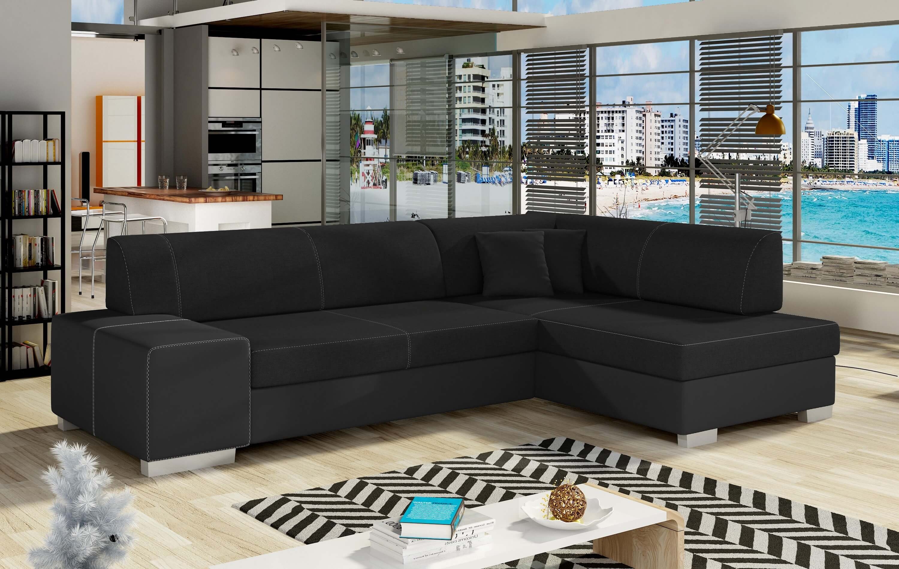 Das Ecksofa Fabrizio ist die perfekte Lösung für Ihr Wohnzimmer. Mit seiner Bettfunktion und dem geräumigen Bettkasten bietet es Ihnen nicht nur eine gemütliche Sitzgelegenheit, sondern auch einen komfortablen Schlafplatz für Übernachtungsgäste. Die Wellenunterfederung und die atmungsaktive Polyätherschaum-Polsterung sorgen für einen angenehmen Sitz- und Liegekomfort. Die weichen und elastischen Sitze laden zum Entspannen ein. Das einfache Umbausystem ermöglicht es Ihnen, das Sofa schnell und unkompliziert in eine große Liegefläche zu verwandeln. Der Bettkasten in der Ottomane bietet zusätzlichen Stauraum für Decken und Kissen. Die gepolsterte Rückseite ermöglicht es Ihnen, das Sofa frei im Raum zu platzieren. Verfügbar in verschiedenen Farben und Stoffen, können Sie das Ecksofa Fabrizio perfekt an Ihren Einrichtungsstil anpassen und Ihrem Wohnzimmer eine gemütliche Atmosphäre verleihen.