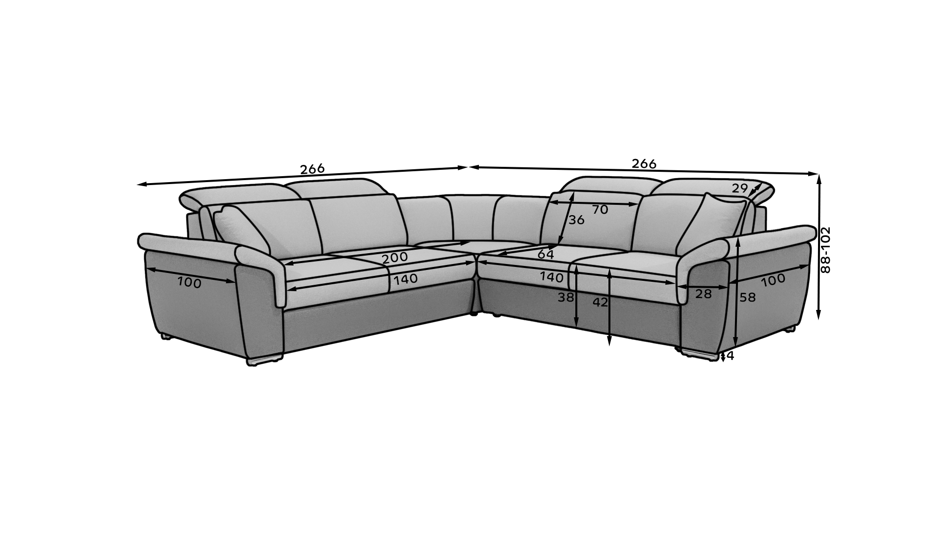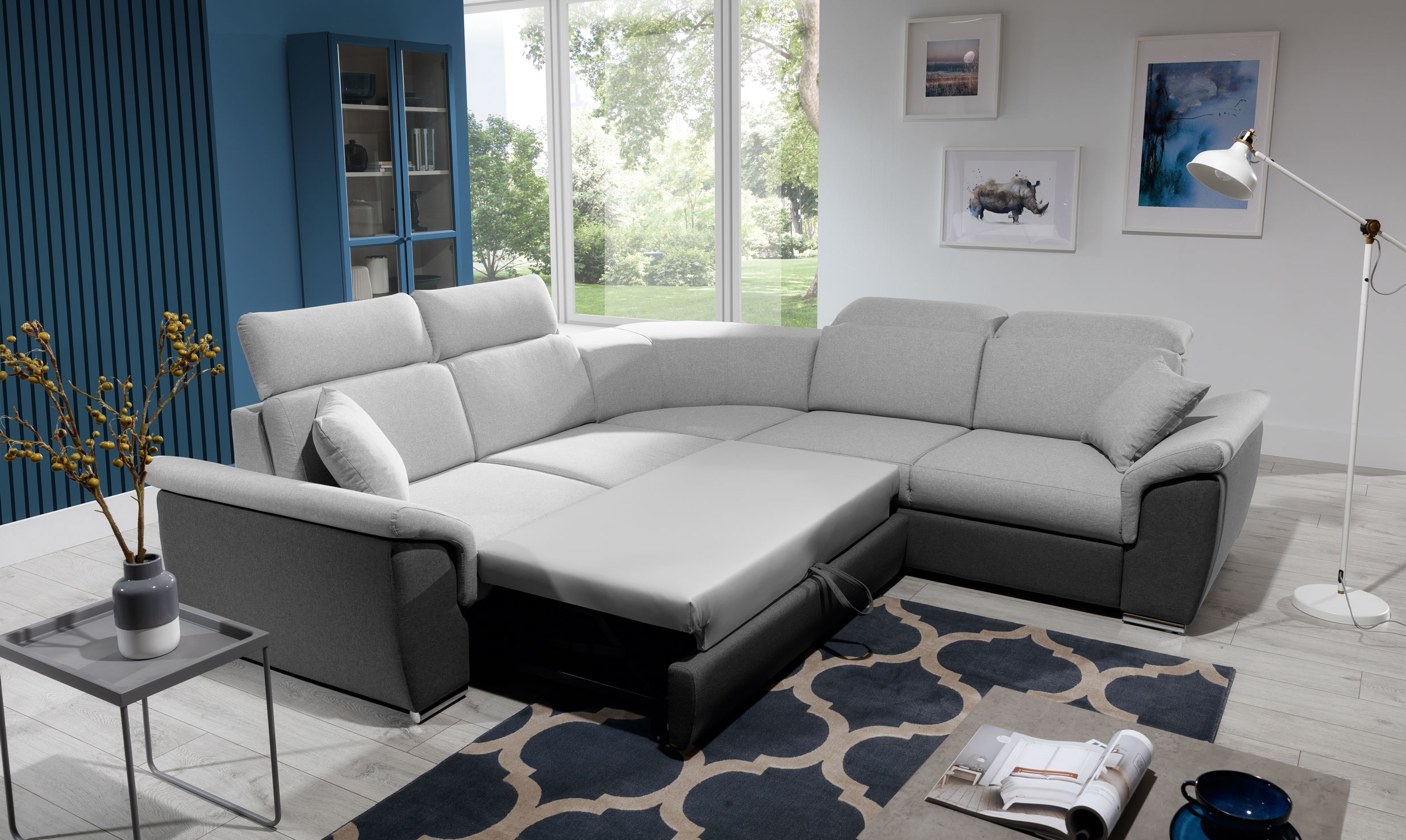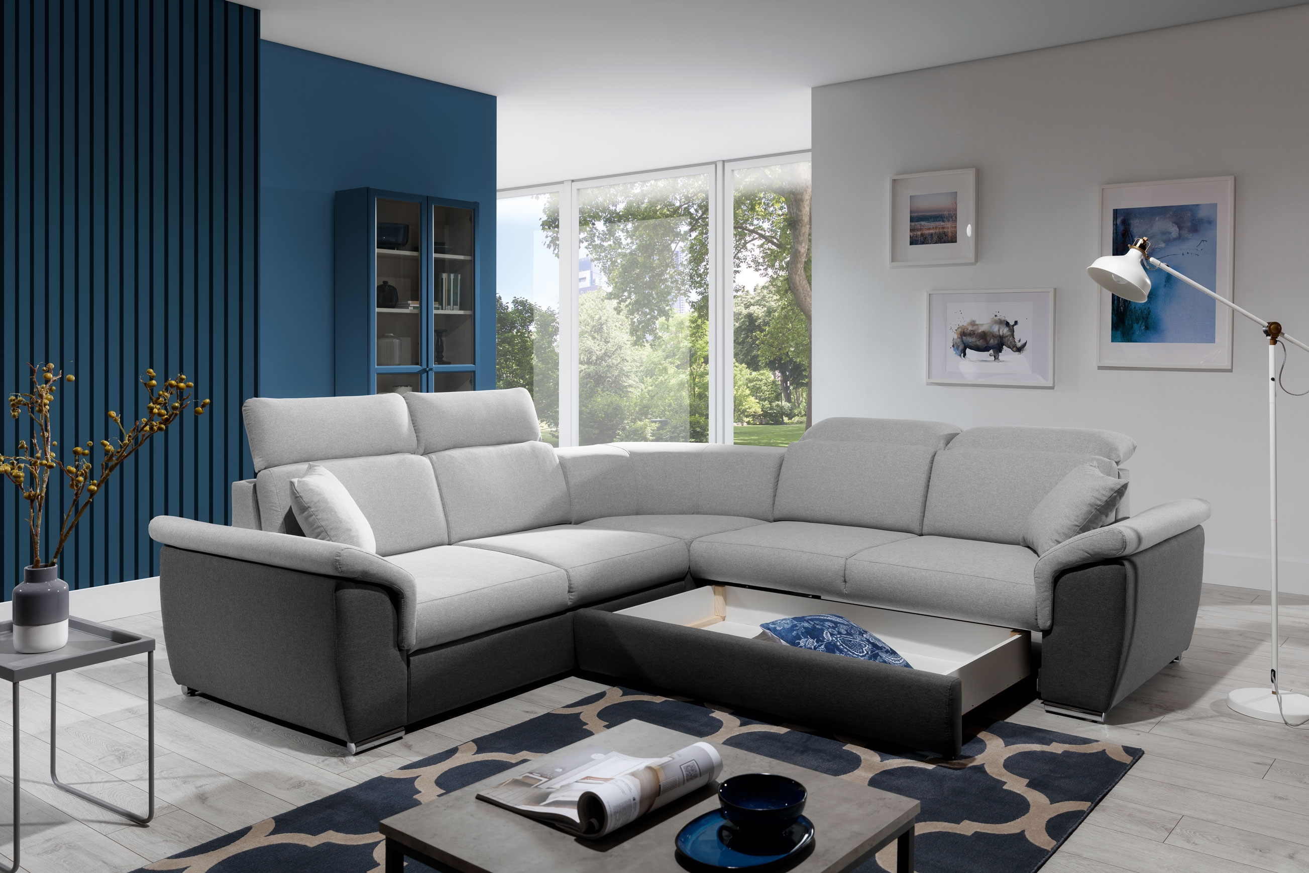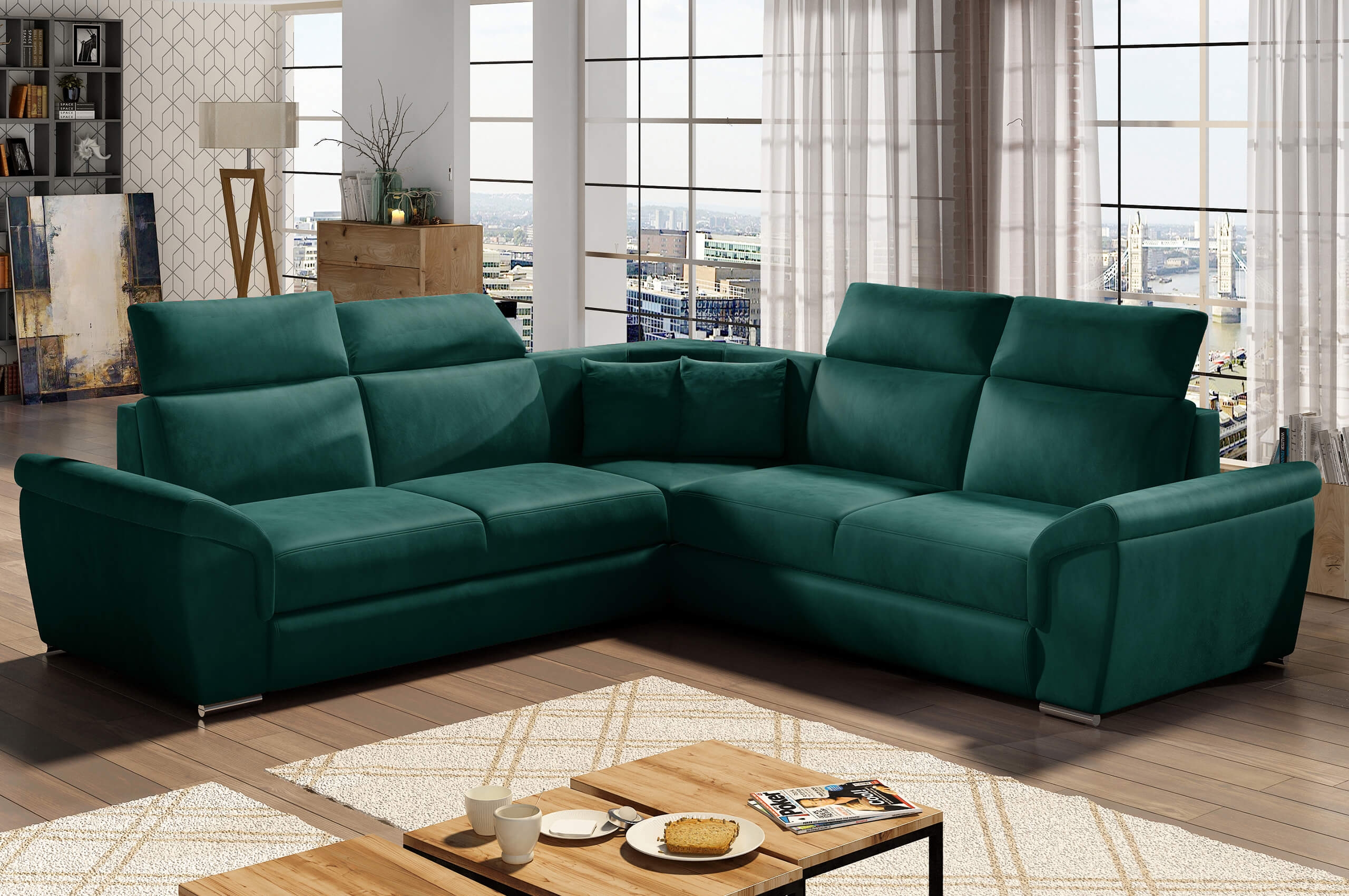 - Modernes Ecksofa mit verstellbaren Kopfstützen