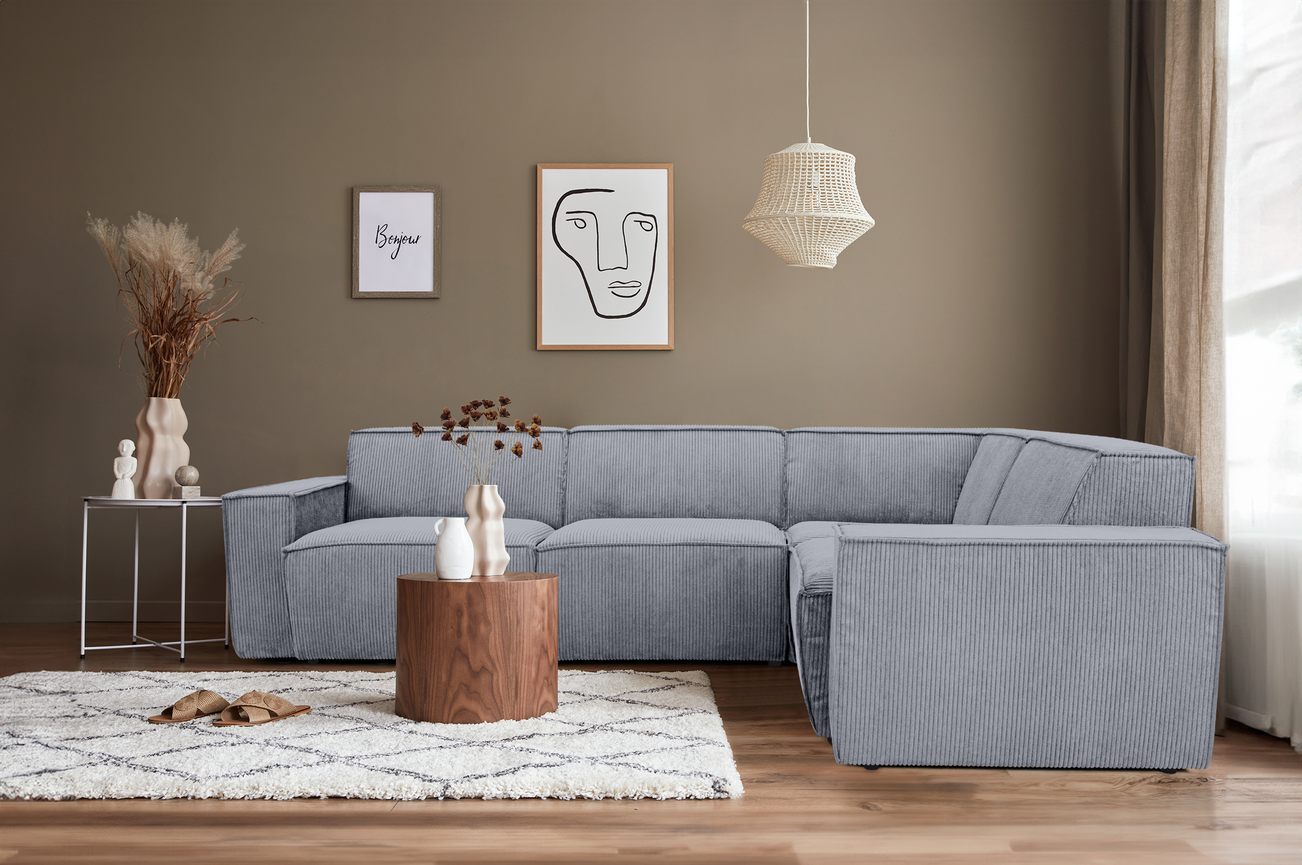 Entdecken Sie das Ecksofa Element - eine moderne und vielseitige Lösung für Ihr Wohnzimmer. Mit seiner modular erweiterbaren Konstruktion bietet dieses Ecksofa Ihnen die Flexibilität, Ihren Wohnraum nach Ihren individuellen Bedürfnissen zu gestalten. Es besteht aus zwei Armlehnen, drei Einzelmodulen und einem Eckmodul, die Sie ganz nach Belieben kombinieren können. Die abnehmbaren Armlehnen ermöglichen eine einfache Anpassung an unterschiedliche Raumkonfigurationen und bieten zusätzliche Flexibilität. Dank seiner beidseitigen Stellbarkeit können Sie das Ecksofa Element problemlos in Ihrem Wohnraum positionieren, ganz nach Ihren Wünschen und Gegebenheiten. Egal, ob links oder rechts - dieses Ecksofa passt sich perfekt an Ihre Raumgestaltung an. Die freie Stellbarkeit ermöglicht es Ihnen, den Raum optimal zu nutzen und Ihr Wohnzimmer nach Ihren Vorstellungen einzurichten. Das Ecksofa Element ist in einer Vielzahl von Stoffen und Farben erhältlich, damit es sich nahtlos in Ihr bestehendes Interieur einfügt. Egal, ob Sie einen klassischen Look oder einen modernen Akzent suchen - mit den verschiedenen Optionen finden Sie ganz sicher das passende Design für Ihr Zuhause. Und das Beste: Sie können Ihr Ecksofa Element ganz nach Ihren Wünschen erweitern. In unserem Shop finden Sie zusätzliche Module, mit denen Sie Ihre Sitzlandschaft noch individueller gestalten können. Erleben Sie höchsten Komfort und maximale Flexibilität mit dem Ecksofa Element und machen Sie Ihr Zuhause zu einem Ort, an dem Sie sich rundum wohlfühlen!