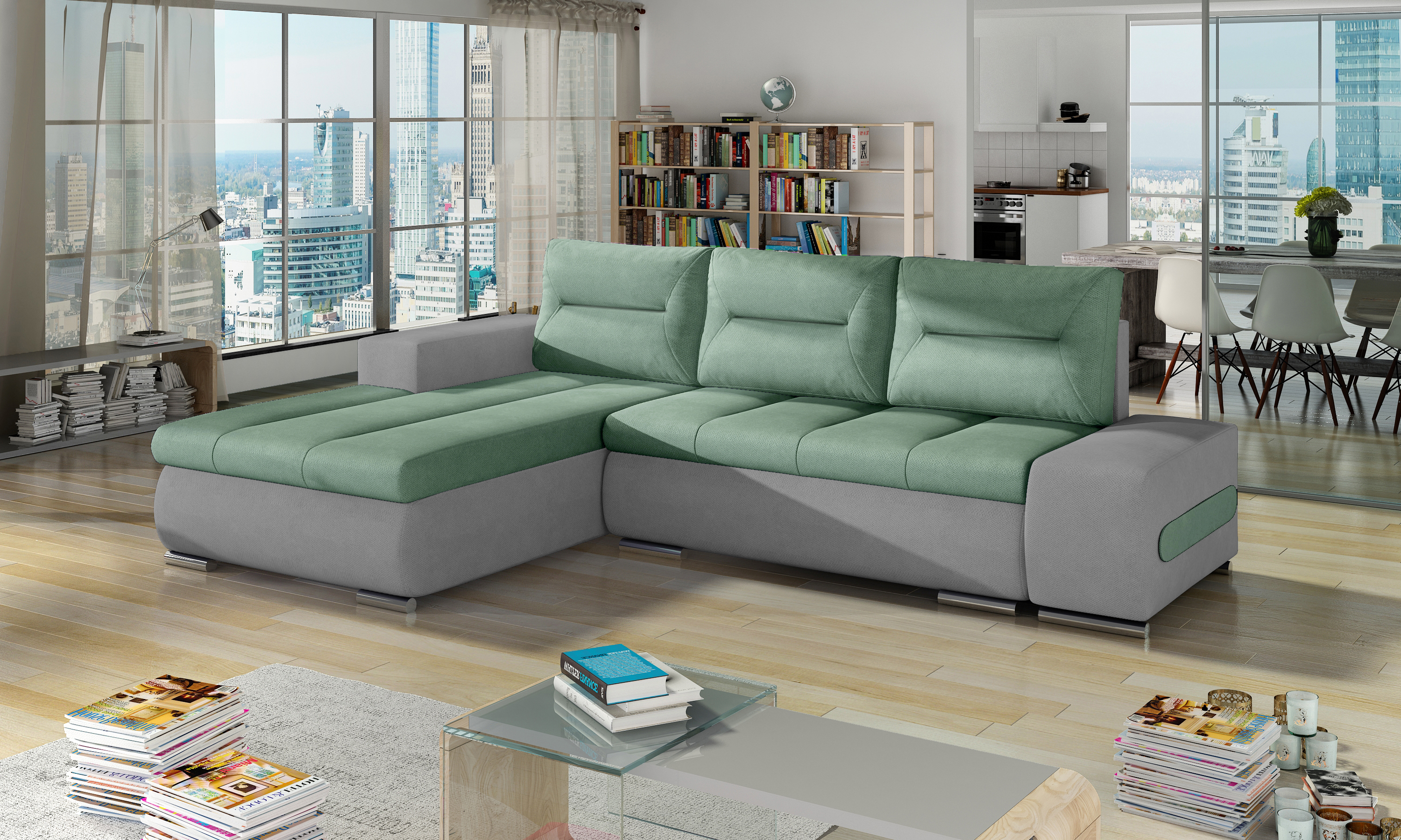 Das Ecksofa Otto ist die perfekte Ergänzung für Ihr Wohnzimmer. Mit seinem klassischen Design und seiner vielseitigen Funktionalität bietet es Ihnen nicht nur eine gemütliche Sitzgelegenheit, sondern auch einen komfortablen Schlafplatz für Übernachtungsgäste. Die elegante Nähte in den Sitzflächen und Rückenlehnen verleihen dem Sofa einen Hauch von Raffinesse. Die Schlaffunktion wird durch Ausziehen des Rückens und Umklappen der Rückenlehne aktiviert, während der geräumige Bettkasten zusätzlichen Stauraum bietet. Die Rückseite ist gepolstert, um auch frei im Raum platziert werden zu können. Mit Wellenunterfederung und atmungsaktiver Polyätherschaum-Polsterung bietet das Ecksofa Otto maximalen Komfort und Langlebigkeit. Das stabile Holzgestell und die Metallfüße sorgen für Stabilität und Standfestigkeit. Erhältlich in vielen verschiedenen Farben und Stoffen, können Sie das Ecksofa Otto perfekt an Ihren Einrichtungsstil anpassen und Ihrem Wohnzimmer eine zeitlose Eleganz verleihen.
