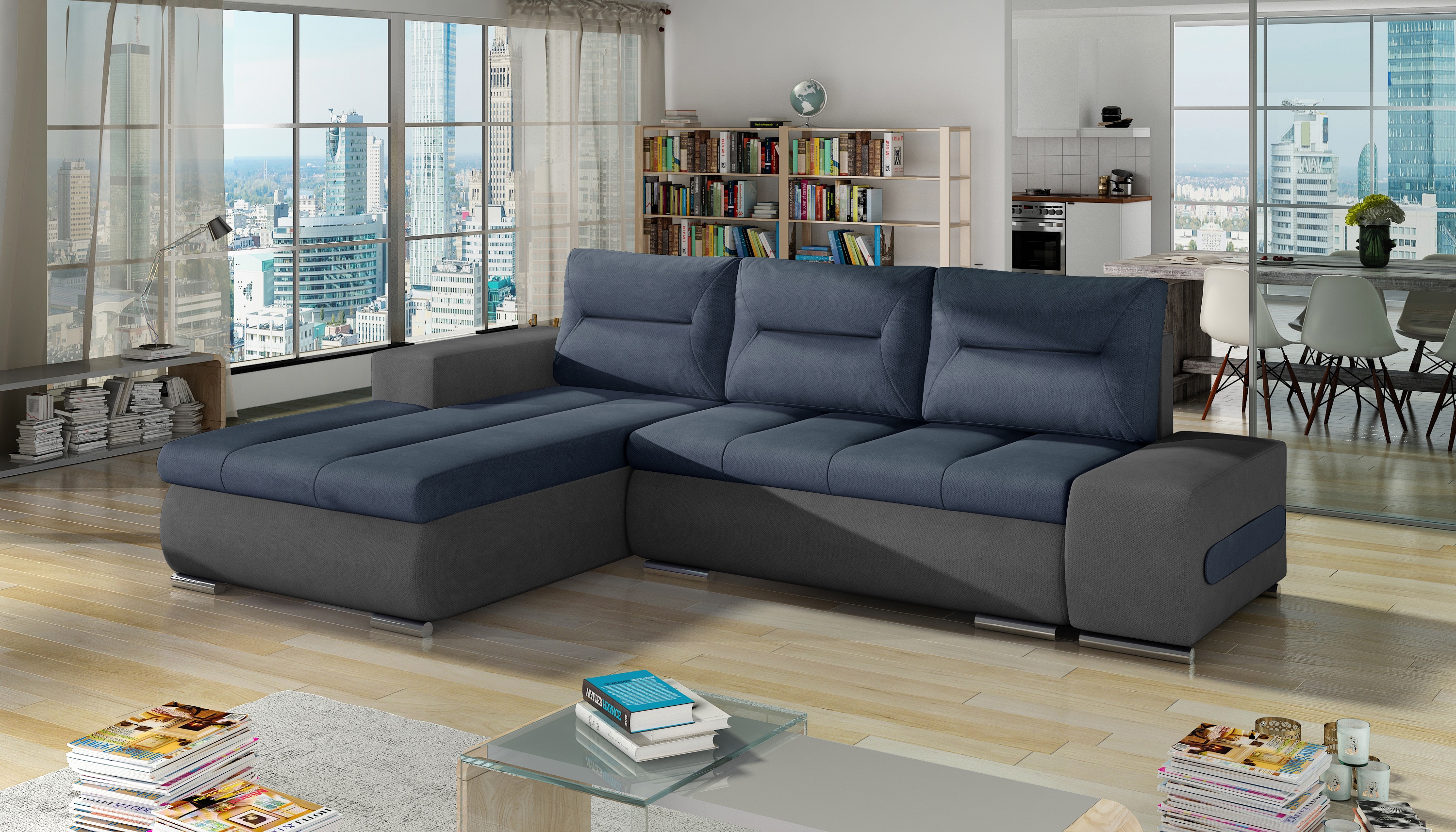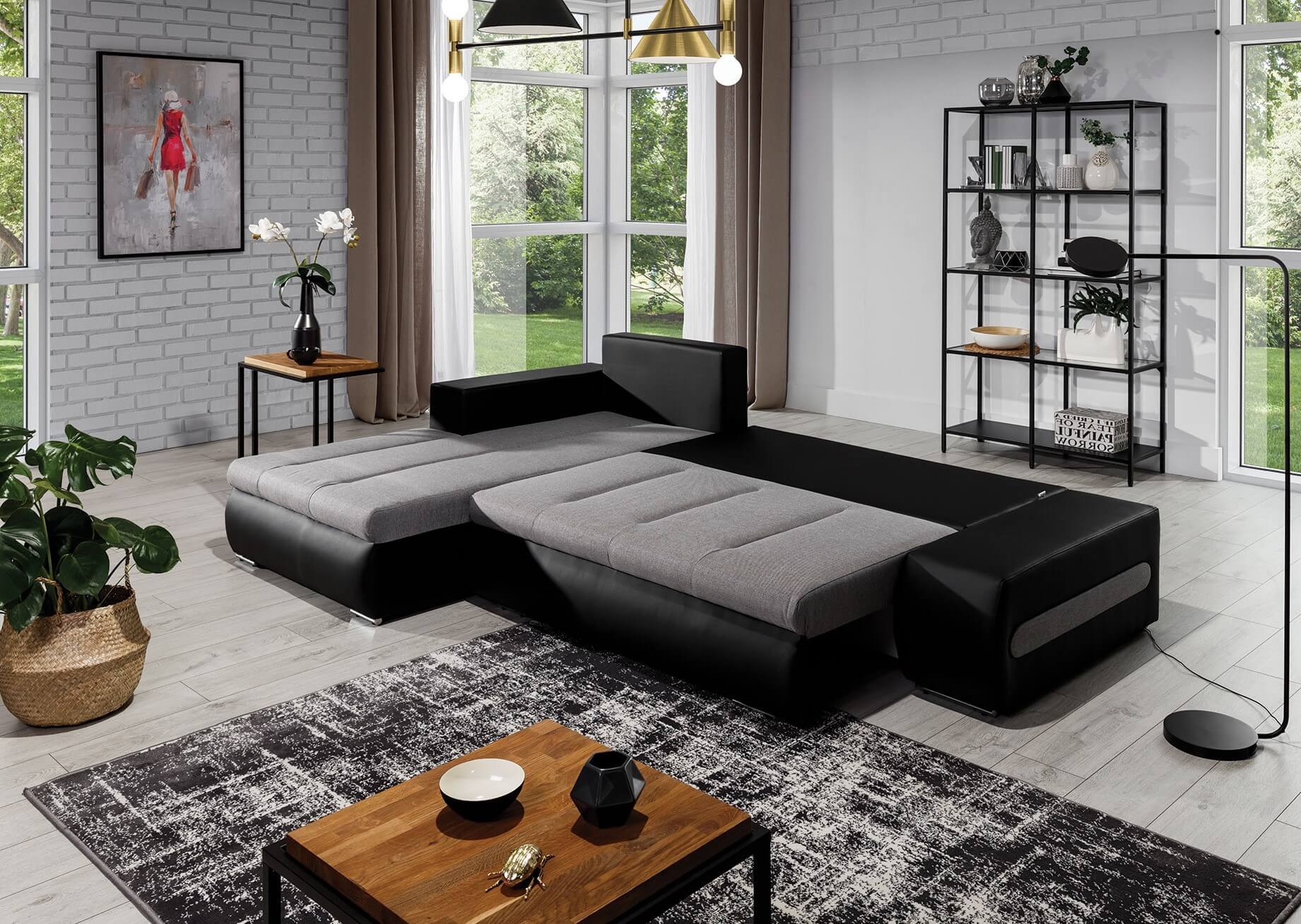 Das Ecksofa Otto ist die perfekte Ergänzung für Ihr Wohnzimmer. Mit seinem klassischen Design und seiner vielseitigen Funktionalität bietet es Ihnen nicht nur eine gemütliche Sitzgelegenheit, sondern auch einen komfortablen Schlafplatz für Übernachtungsgäste. Die elegante Nähte in den Sitzflächen und Rückenlehnen verleihen dem Sofa einen Hauch von Raffinesse. Die Schlaffunktion wird durch Ausziehen des Rückens und Umklappen der Rückenlehne aktiviert, während der geräumige Bettkasten zusätzlichen Stauraum bietet. Die Rückseite ist gepolstert, um auch frei im Raum platziert werden zu können. Mit Wellenunterfederung und atmungsaktiver Polyätherschaum-Polsterung bietet das Ecksofa Otto maximalen Komfort und Langlebigkeit. Das stabile Holzgestell und die Metallfüße sorgen für Stabilität und Standfestigkeit. Erhältlich in vielen verschiedenen Farben und Stoffen, können Sie das Ecksofa Otto perfekt an Ihren Einrichtungsstil anpassen und Ihrem Wohnzimmer eine zeitlose Eleganz verleihen.