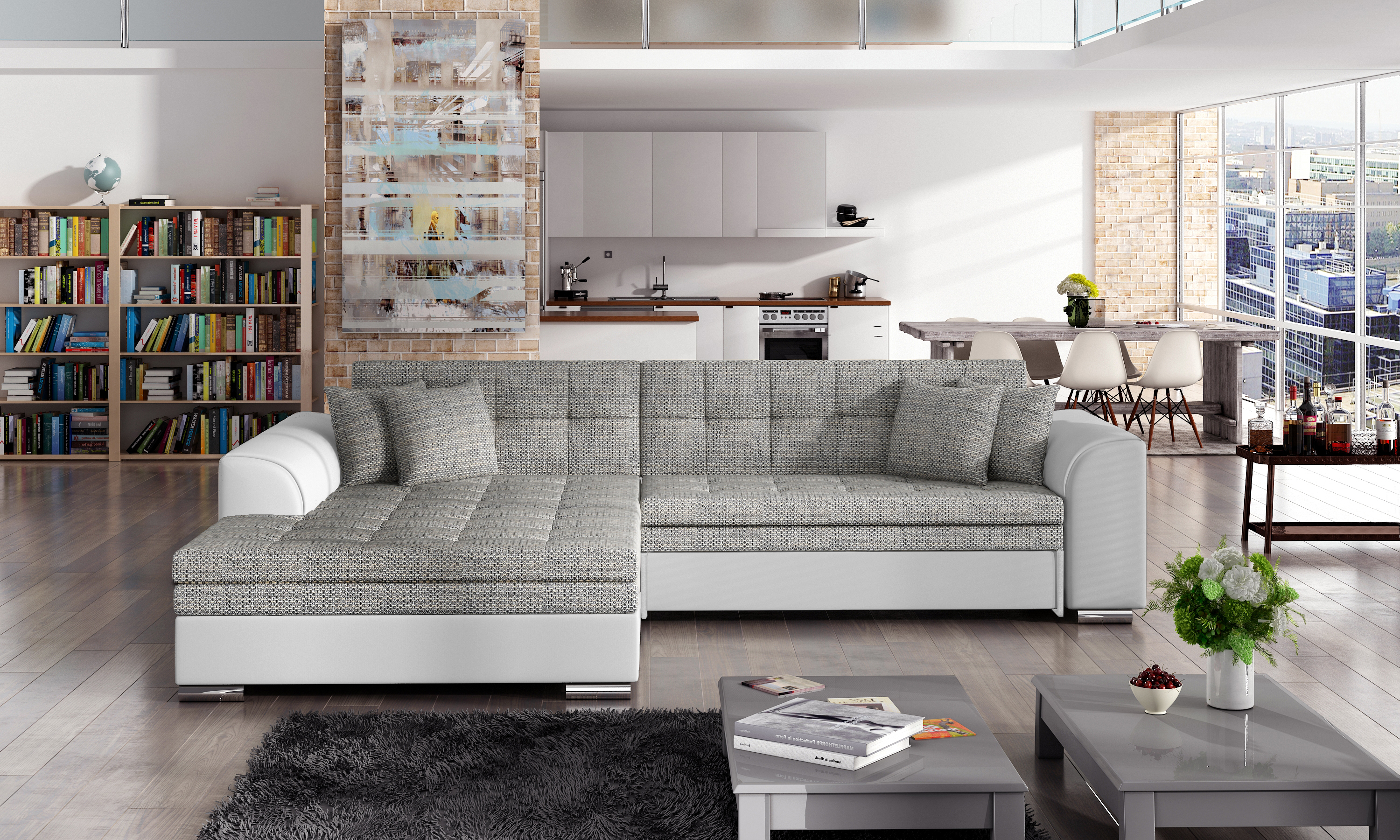 Tauchen Sie ein in den Komfort und die Eleganz des Ecksofas "Testartikel-Sarento". Dieses vielseitige Sofa ist in verschiedenen Farbkombinationen erhältlich und bietet Ihnen die Möglichkeit, Ihren Wohnraum ganz nach Ihren Vorstellungen zu gestalten. Mit seiner Schlaffunktion und geräumigen Sitzen ist es ideal für Gäste oder entspannte Abende zu zweit. Die ausprofilierte Rückenlehne und die abgerundeten Armlehnen sorgen für maximalen Komfort und Stil. Die verchromten Füße verleihen dem Sofa einen modernen Touch, während die stilvolle Steppung das Design komplettiert. Erleben Sie Komfort und Funktionalität in einem Möbelstück mit dem Ecksofa "Testartikel-Sarento".