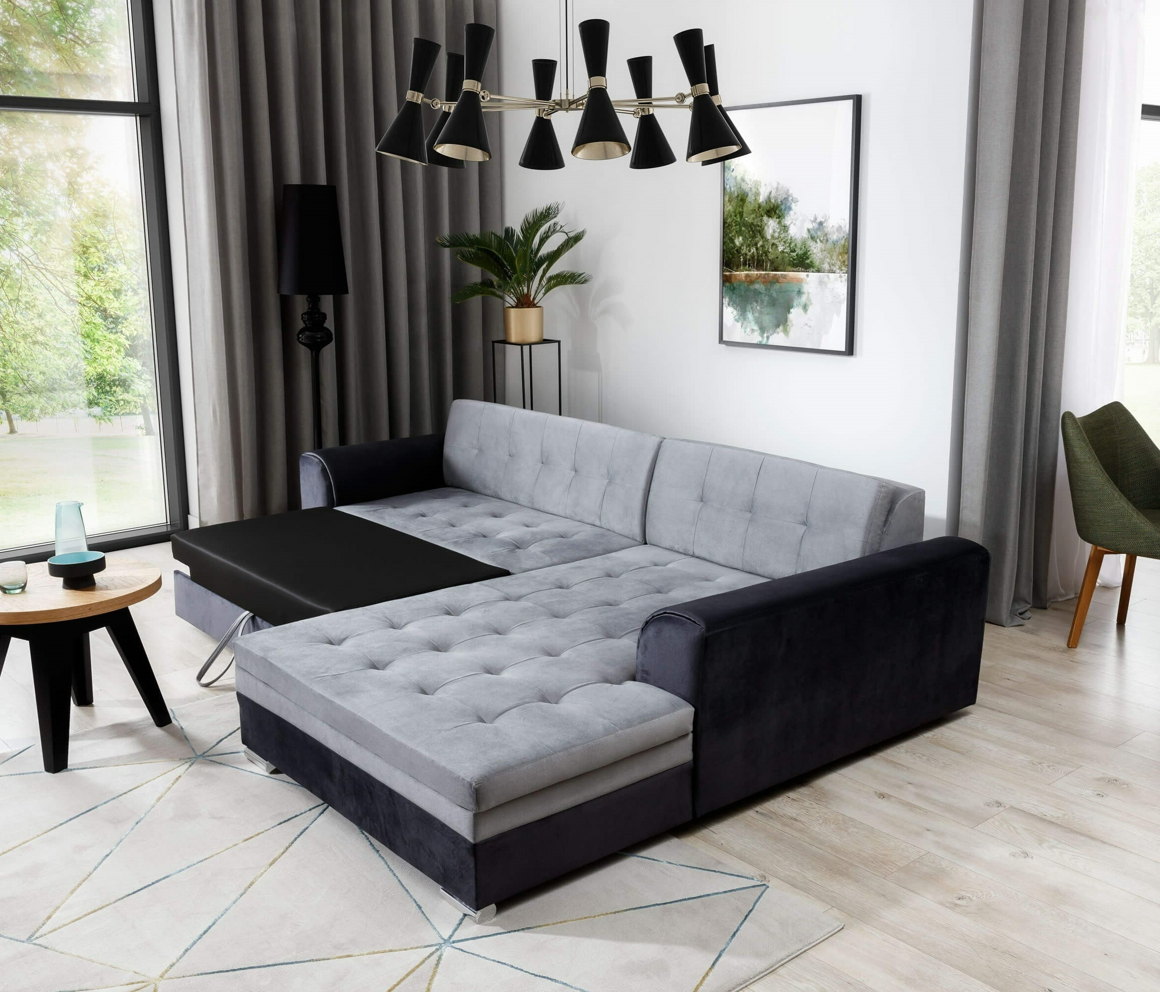 Tauchen Sie ein in den Komfort und die Eleganz des Ecksofas "Testartikel-Sarento". Dieses vielseitige Sofa ist in verschiedenen Farbkombinationen erhältlich und bietet Ihnen die Möglichkeit, Ihren Wohnraum ganz nach Ihren Vorstellungen zu gestalten. Mit seiner Schlaffunktion und geräumigen Sitzen ist es ideal für Gäste oder entspannte Abende zu zweit. Die ausprofilierte Rückenlehne und die abgerundeten Armlehnen sorgen für maximalen Komfort und Stil. Die verchromten Füße verleihen dem Sofa einen modernen Touch, während die stilvolle Steppung das Design komplettiert. Erleben Sie Komfort und Funktionalität in einem Möbelstück mit dem Ecksofa "Testartikel-Sarento".