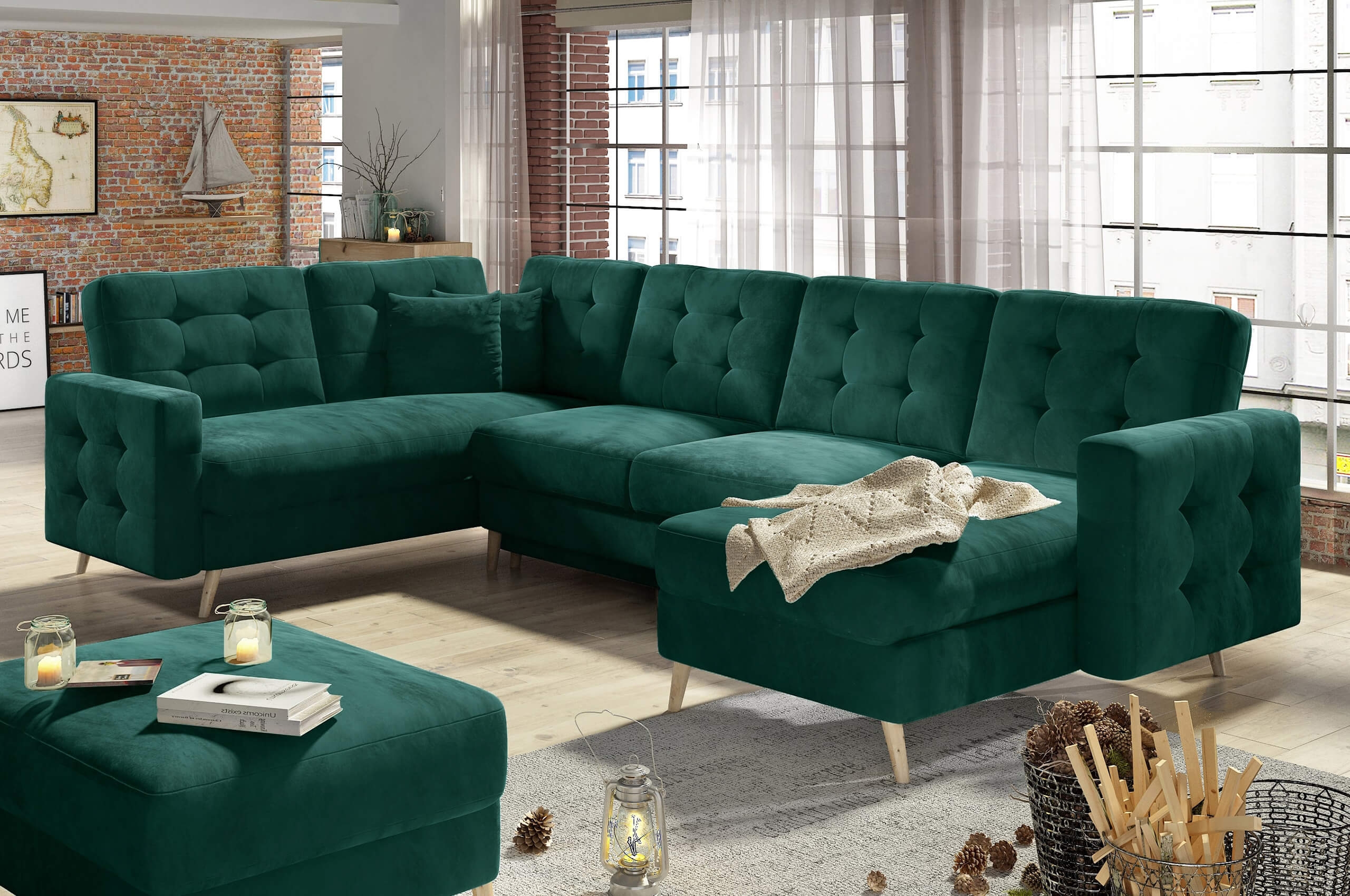 Ein besonderes Highlight sind die massiven Holzfüße, die der Wohnlandschaft Thor eine stabile Basis verleihen und gleichzeitig für eine ansprechende Optik sorgen. Die Wohnlandschaft ist zudem beidseitig montierbar, was Ihnen die Freiheit gibt, sie nach Ihren individuellen Vorlieben und den räumlichen Gegebenheiten anzupassen.