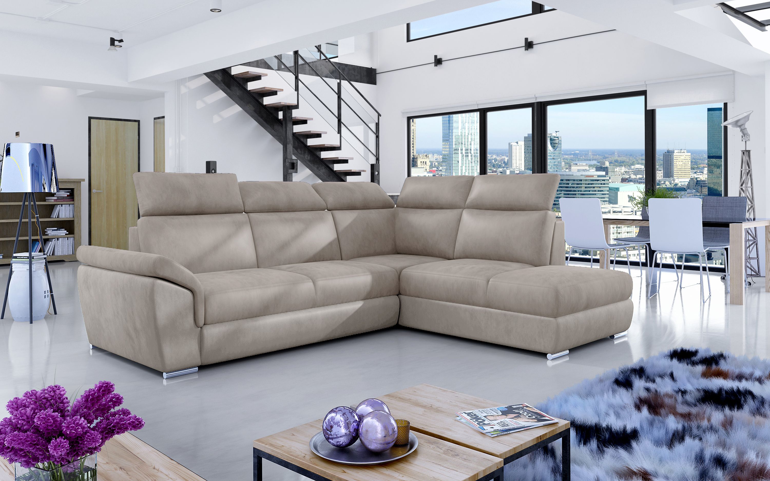 Das Ecksofa Toretto ist die perfekte Wahl für Ihr Wohnzimmer. Mit seiner Bettfunktion und dem geräumigen Bettkasten bietet es Ihnen zusätzlichen Stauraum und Schlafplatz für Gäste. Die Kopfteilverstellung ermöglicht es Ihnen, die Sitzposition nach Ihren Wünschen anzupassen. Die Metallfüße verleihen dem Sofa ein modernes Aussehen, während die Wellenunterfederung für einen angenehmen Sitzkomfort sorgt. Verfügbar in links und rechts Varianten sowie in vielen verschiedenen Farben und Stoffen, können Sie das Ecksofa Toretto perfekt an Ihren Einrichtungsstil anpassen. Genießen Sie entspannte Stunden und gemütliche Nächte auf diesem stilvollen Möbelstück.