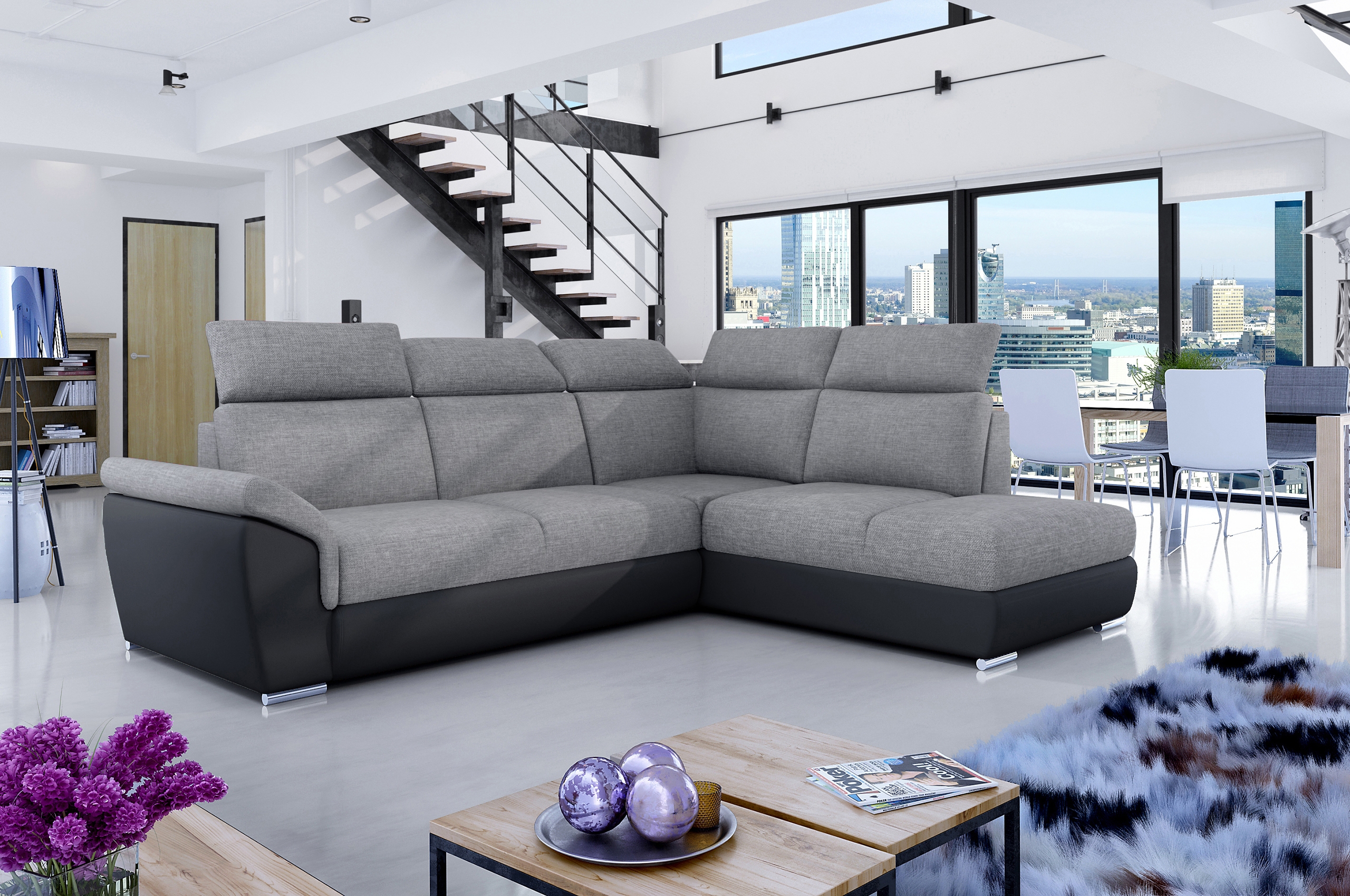 Das Ecksofa Toretto ist die perfekte Wahl für Ihr Wohnzimmer. Mit seiner Bettfunktion und dem geräumigen Bettkasten bietet es Ihnen zusätzlichen Stauraum und Schlafplatz für Gäste. Die Kopfteilverstellung ermöglicht es Ihnen, die Sitzposition nach Ihren Wünschen anzupassen. Die Metallfüße verleihen dem Sofa ein modernes Aussehen, während die Wellenunterfederung für einen angenehmen Sitzkomfort sorgt. Verfügbar in links und rechts Varianten sowie in vielen verschiedenen Farben und Stoffen, können Sie das Ecksofa Toretto perfekt an Ihren Einrichtungsstil anpassen. Genießen Sie entspannte Stunden und gemütliche Nächte auf diesem stilvollen Möbelstück.