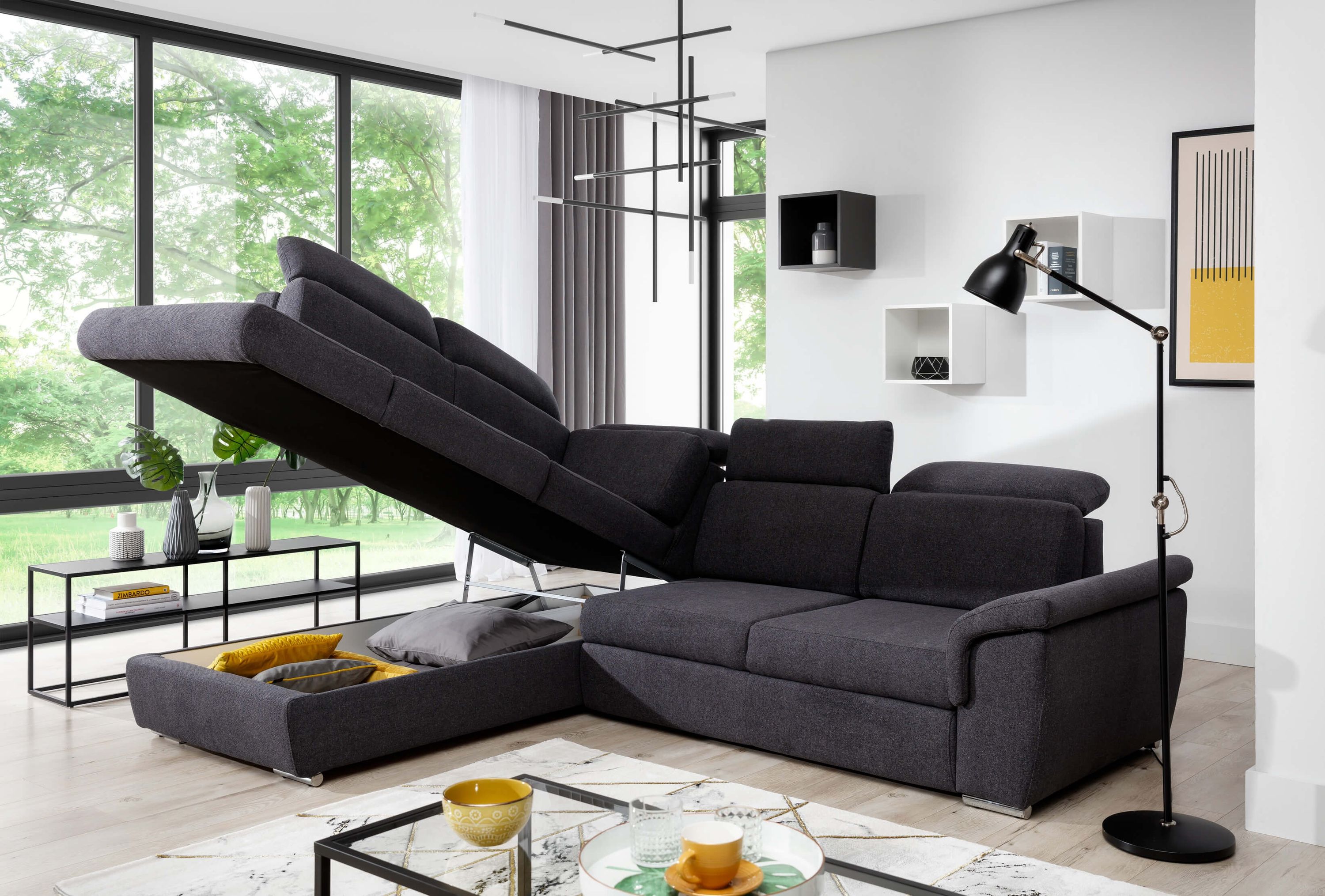 Das Ecksofa Toretto ist die perfekte Wahl für Ihr Wohnzimmer. Mit seiner Bettfunktion und dem geräumigen Bettkasten bietet es Ihnen zusätzlichen Stauraum und Schlafplatz für Gäste. Die Kopfteilverstellung ermöglicht es Ihnen, die Sitzposition nach Ihren Wünschen anzupassen. Die Metallfüße verleihen dem Sofa ein modernes Aussehen, während die Wellenunterfederung für einen angenehmen Sitzkomfort sorgt. Verfügbar in links und rechts Varianten sowie in vielen verschiedenen Farben und Stoffen, können Sie das Ecksofa Toretto perfekt an Ihren Einrichtungsstil anpassen. Genießen Sie entspannte Stunden und gemütliche Nächte auf diesem stilvollen Möbelstück.