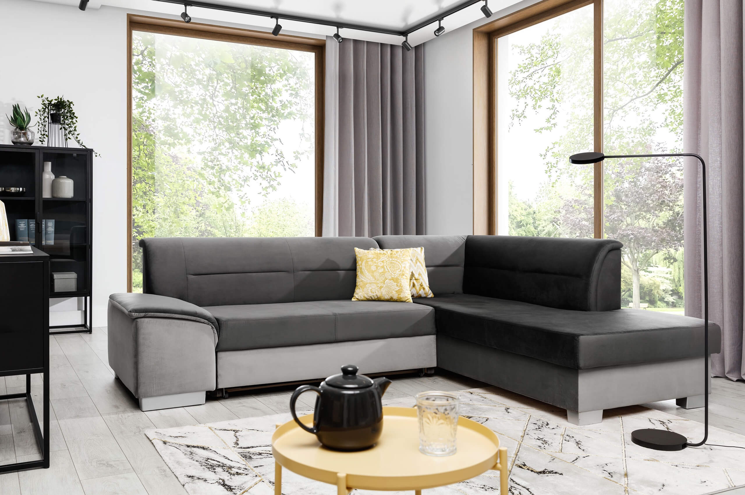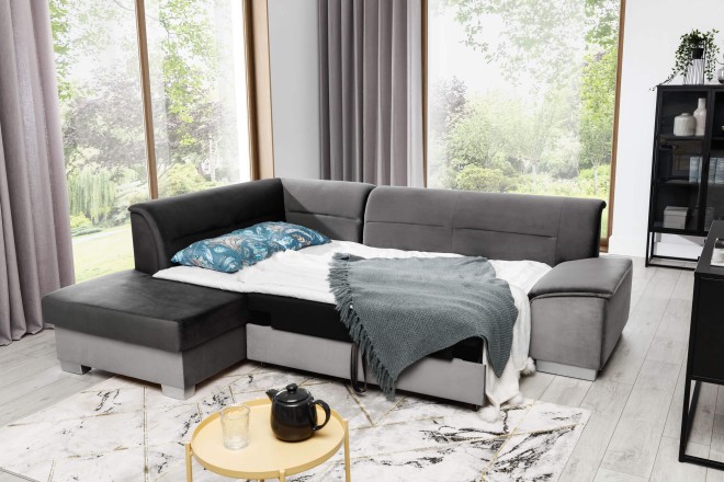 Entdecken Sie das moderne Ecksofa Versio - die perfekte Ergänzung für Ihr Zuhause! Verfügbar in einer Vielzahl von Farben und Stoffen, passt es sich Ihrem individuellen Stil an. Das Highlight des Versio Ecksofas ist seine praktische Schlaffunktion und der integrierte Bettkasten. Verwandeln Sie es im Handumdrehen in eine gemütliche Schlafgelegenheit für Übernachtungsgäste und nutzen Sie den Bettkasten für zusätzlichen Stauraum. Ergänzen Sie Ihre Wohnlandschaft um dieses stilvolle Ecksofa und entdecken Sie weitere Modelle in unserem Shop. Machen Sie Versio zum Mittelpunkt Ihres Wohnzimmers und genießen Sie Komfort und Funktionalität in einem Möbelstück.