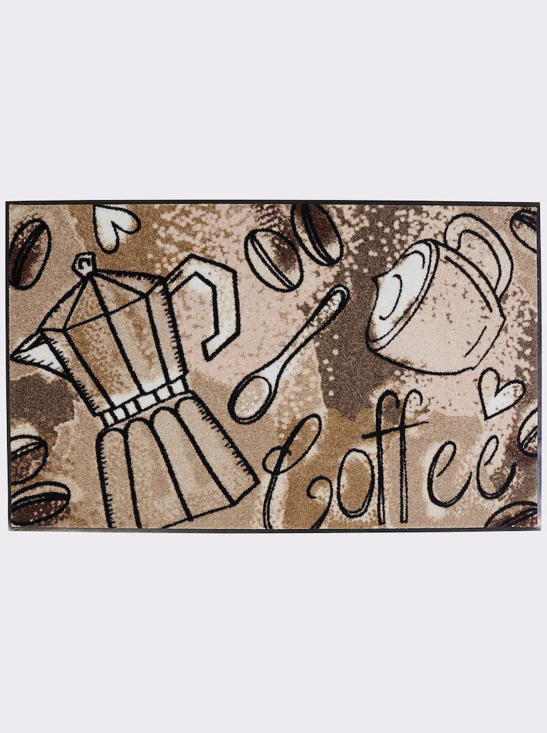 Fußmatte „Coffee“, 60 x 40 cm, braun Bringen Sie Charme und Funktionalität in Ihren Eingangsbereich mit dieser hochwertigen Fußmatte „Coffee“ im Natur-Braun-Ton. Diese praktische Matte ist perfekt für Innenräume und überdachte Außenbereiche geeignet. Mit einem charmanten „Coffee“-Motiv verleiht sie Ihrem Zuhause einen Hauch von Gemütlichkeit. Die Fußmatte ist äußerst strapazierfähig und besteht aus 100% Polyamid, während die rutschhemmende Rückseite aus 100% Gummi gefertigt ist. Sie ist PVC-frei und somit auch ideal für Allergiker. Dank ihrer Eignung für Fußbodenheizungen und der Waschbarkeit in der Maschine bei bis zu 60 °C ist sie besonders pflegeleicht. Mit einer Florhöhe von 7 mm bietet sie angenehmen Komfort unter den Füßen. Hergestellt in Deutschland, überzeugt diese Fußmatte durch ihre hohe Qualität und Langlebigkeit.
