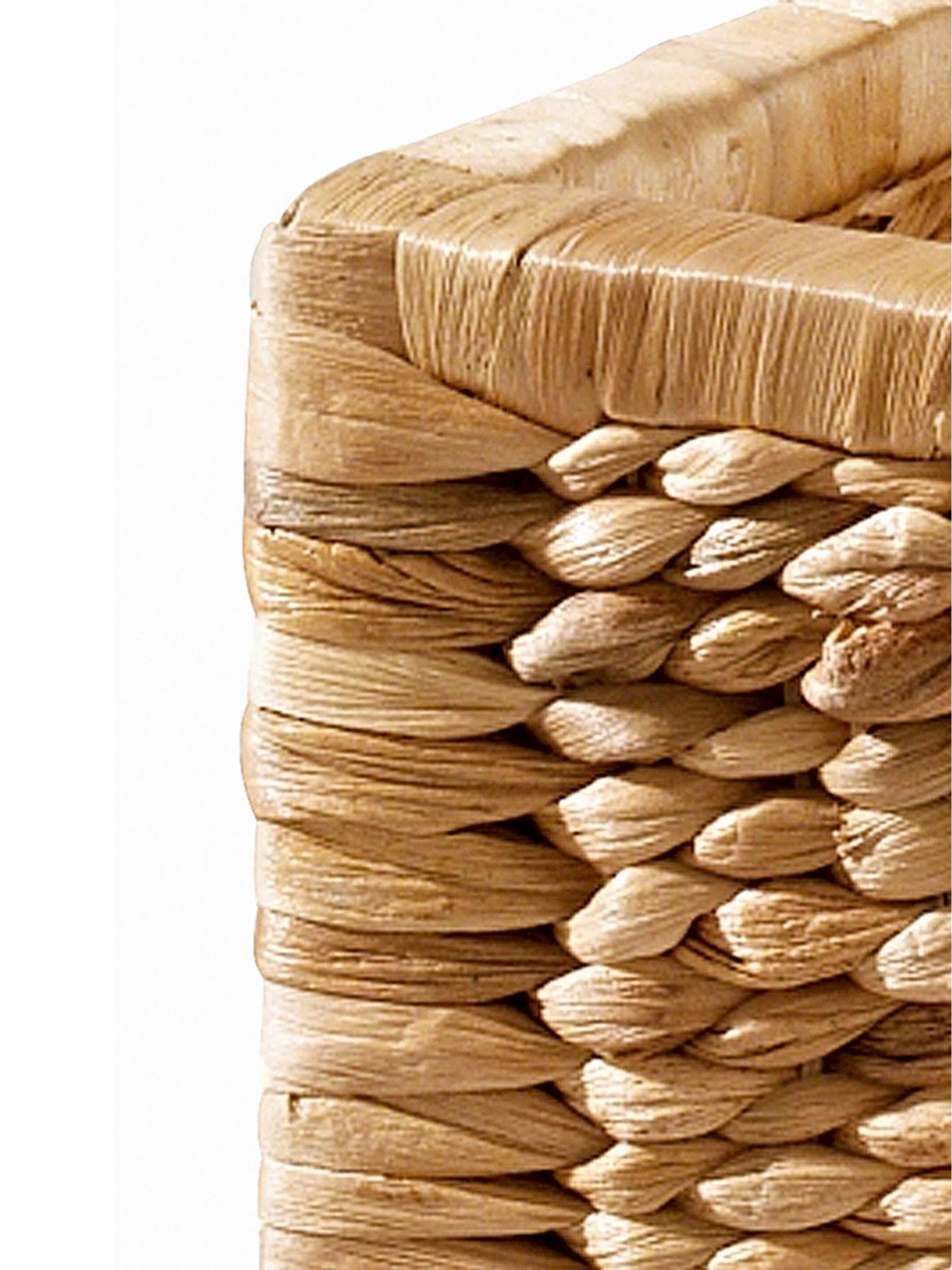 Aus naturbelassenem Wasserhyazinthengeflecht. Mit Griffloch vorne. Im 3er-Set erhältlich.
