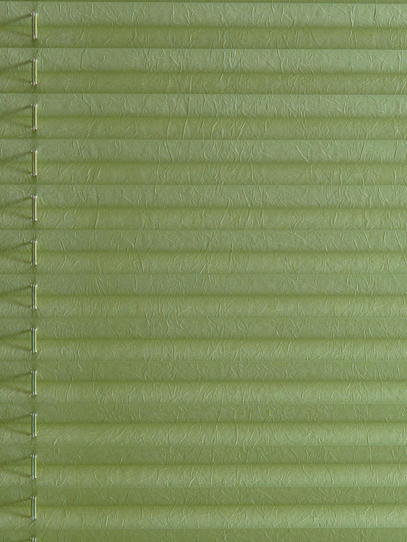 Diese Jalousie in grün kommt mit einer coolen Crash-Optik daher. Zudem ist das Plissee von oben und unten zu raffen.