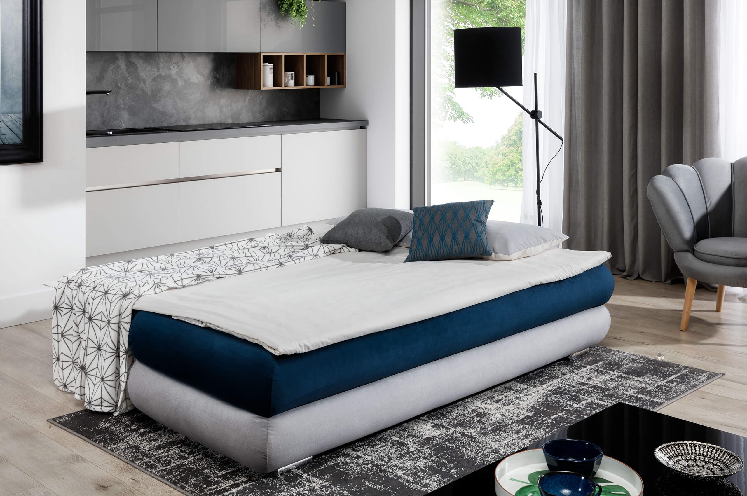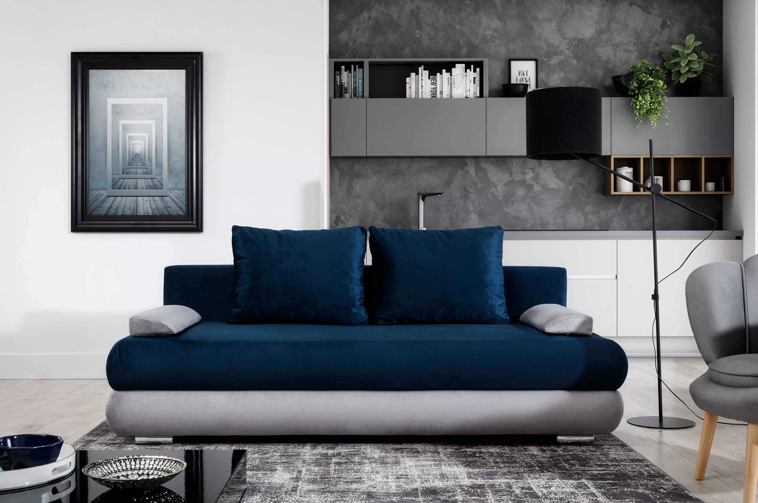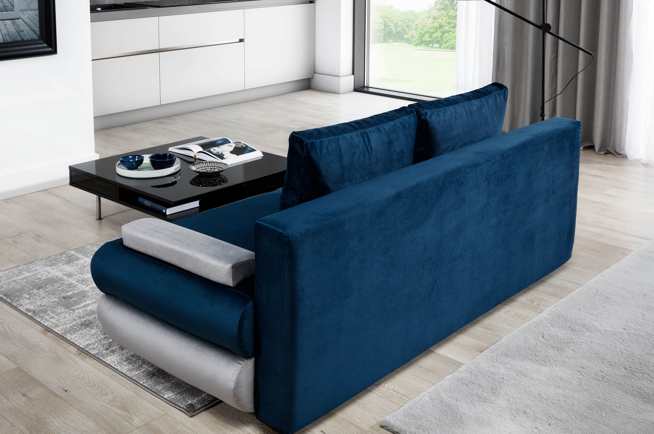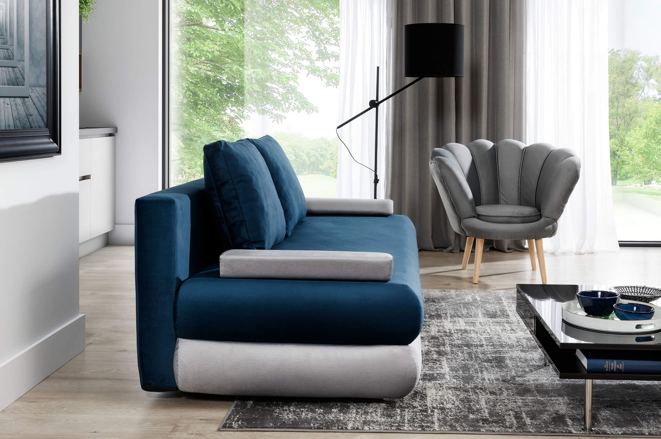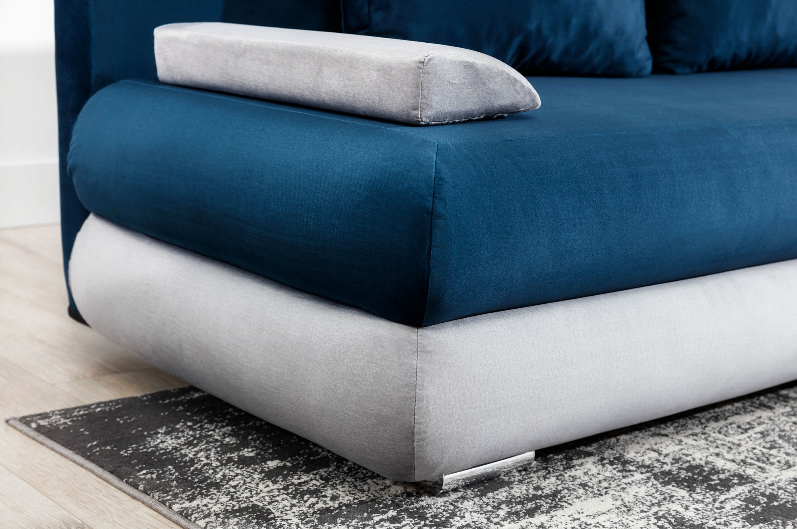 Schlafsofa Mila, Samtoptik, Schlaffunktion, Stauraum
