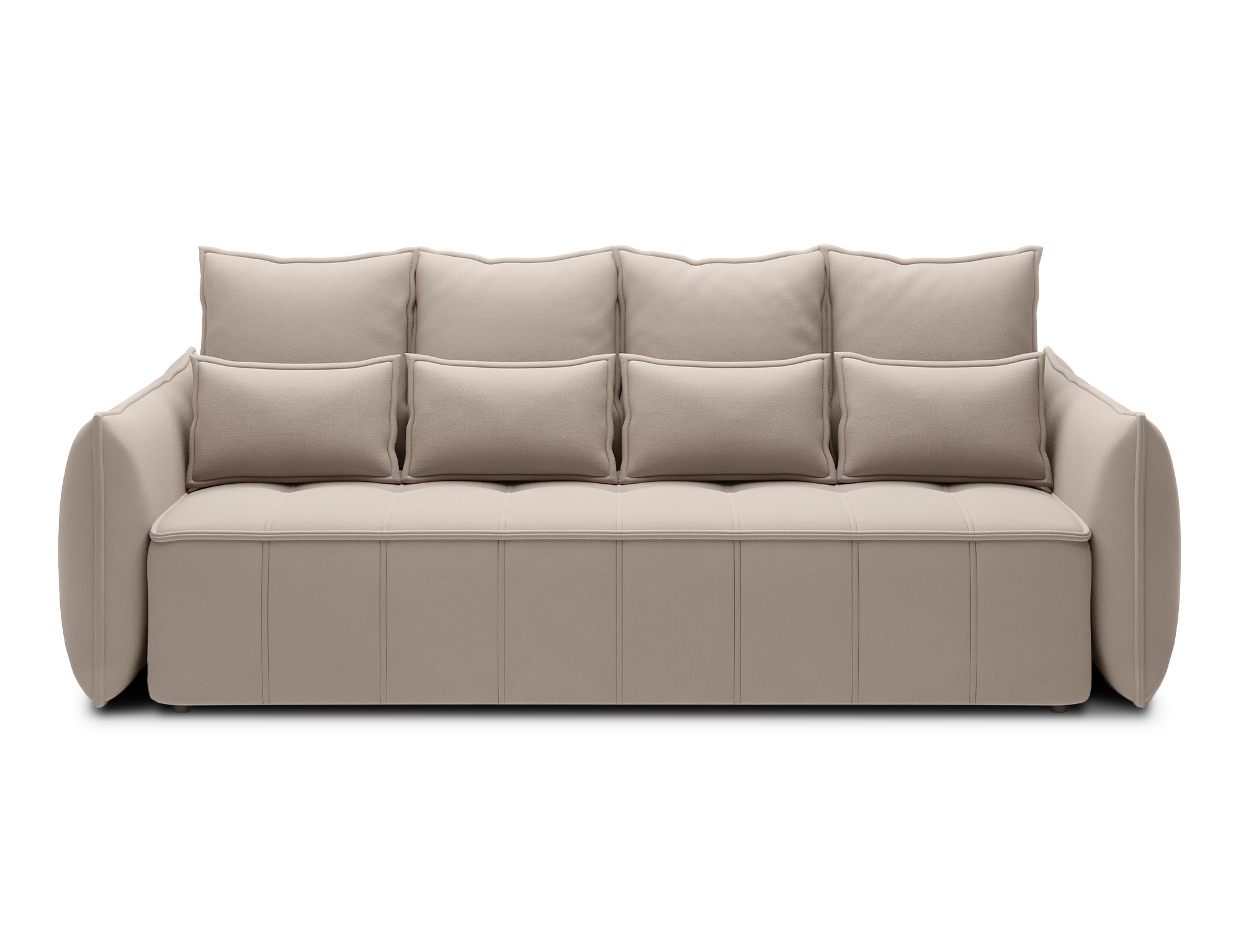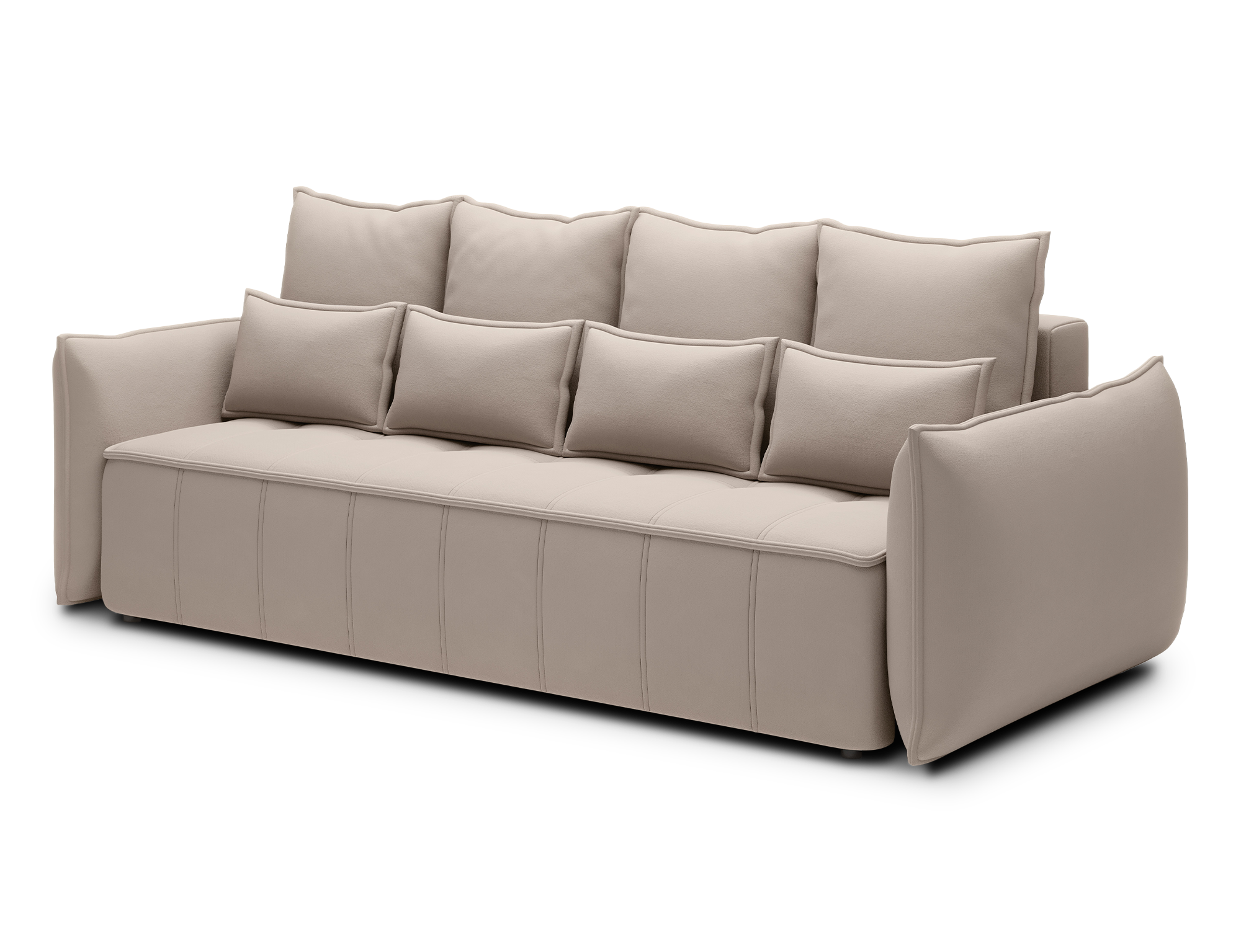 Die großzügige Sitzfläche mit HR-Schaum (hochflexibel) sorgt für exzellente Unterstützung und Formbeständigkeit – auch bei täglicher Nutzung. Die Rückenlehne mit losen Kissen, gefüllt mit Schaumgranulat, passt sich ideal dem Körper an und bietet maximalen Komfort.