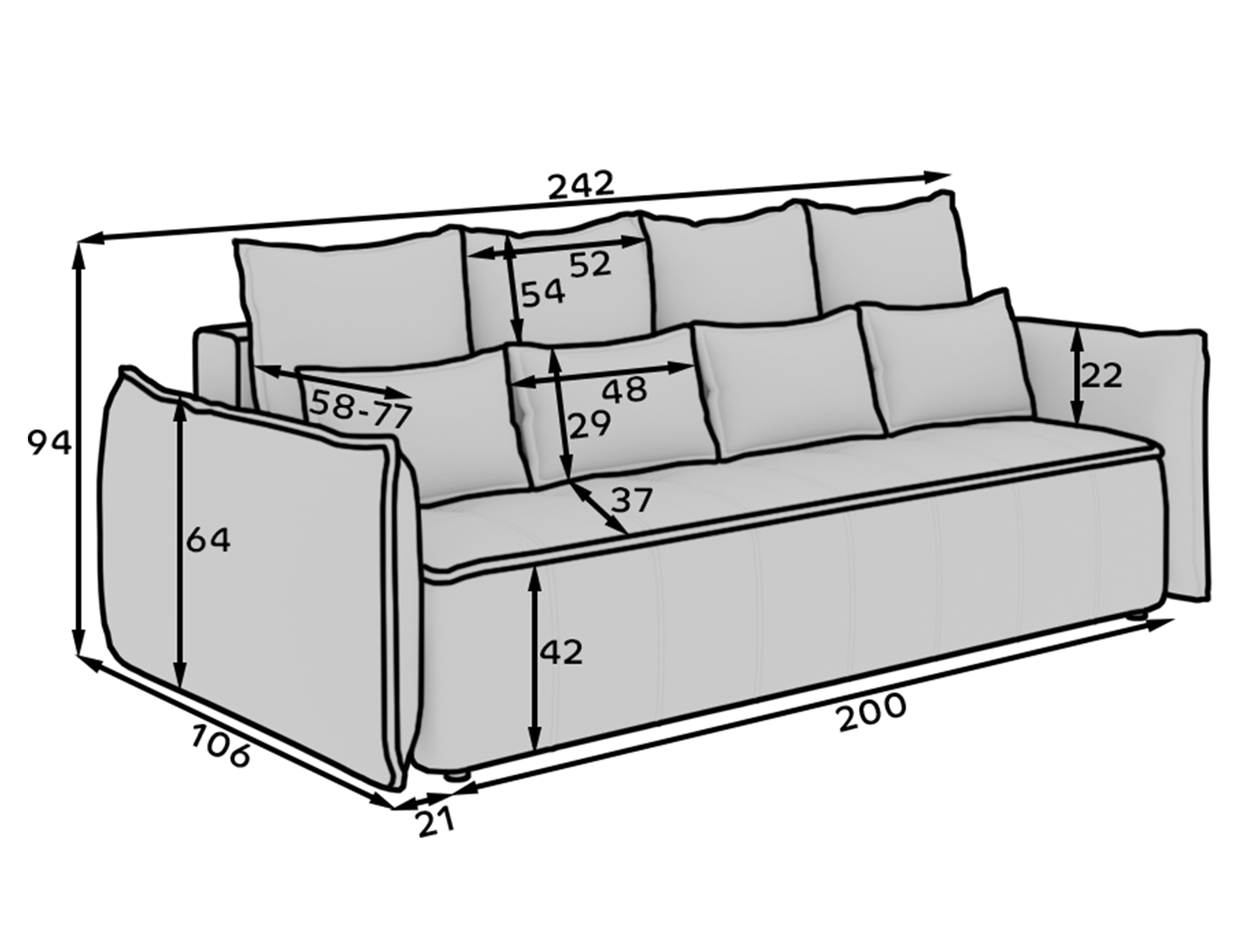 Sitztiefe mit Kissen: | 37 |
