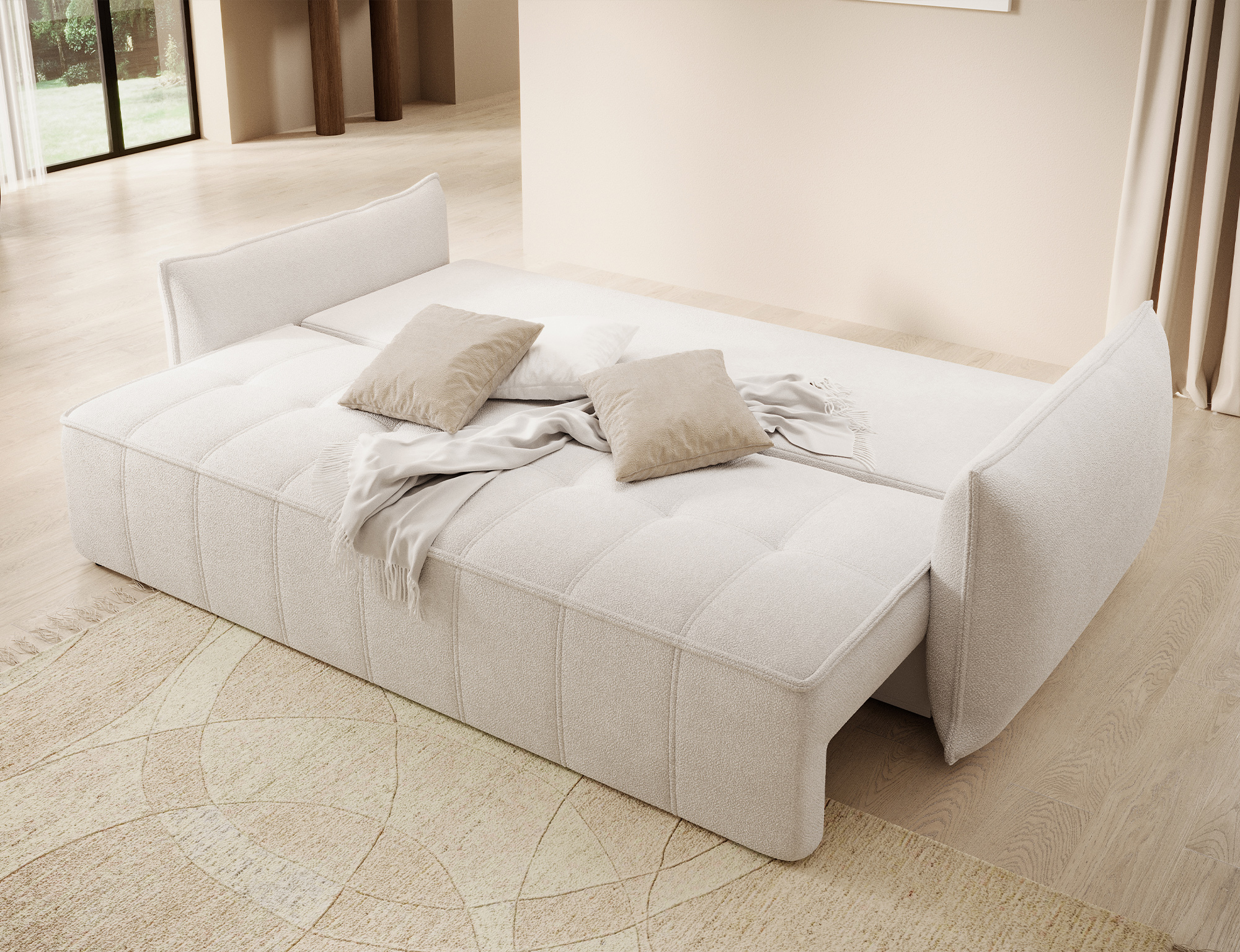 Sofa Wilson, Bouclé-Samt, 3-Sitzer, mit Schlaffunktion