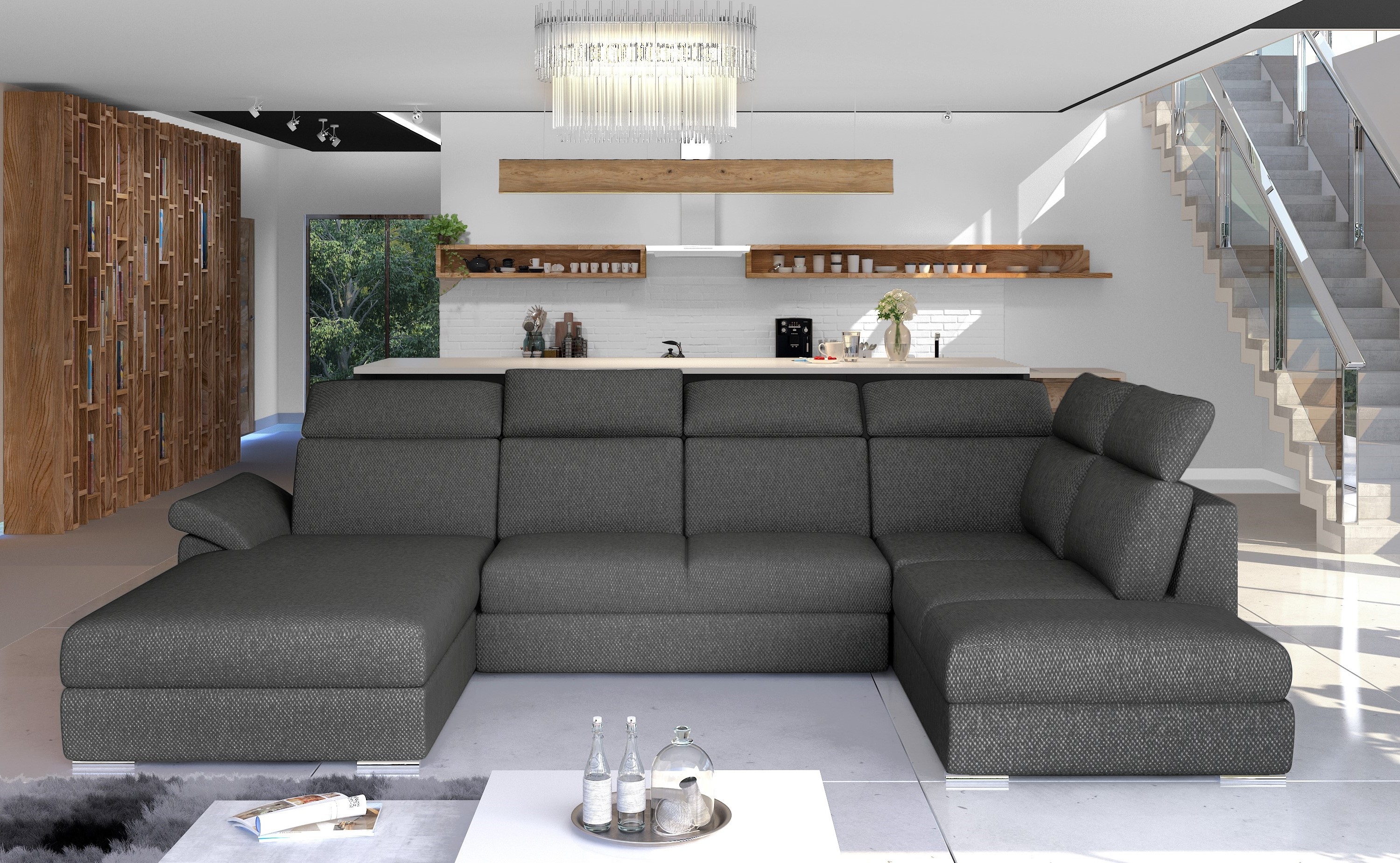 Entdecken Sie die vielseitige Wohnlandschaft Comfort - die ultimative Kombination aus Stil und Funktionalität für Ihr Zuhause! Verfügbar in einer breiten Auswahl an Farben und Stoffen, passt sie sich perfekt Ihrem individuellen Geschmack an. Mit einer praktischen Schlaffunktion, einem integrierten Bettkasten und einer einstellbaren Kopfstütze bietet die Comfort Wohnlandschaft maximalen Komfort und Flexibilität. Verwandeln Sie sie im Handumdrehen in eine gemütliche Schlafgelegenheit für Übernachtungsgäste und nutzen Sie den Bettkasten für zusätzlichen Stauraum. Ergänzen Sie Ihr Wohnzimmer um diese stilvolle Wohnlandschaft und entdecken Sie weitere Modelle in unserem Shop. Machen Sie Comfort zum Mittelpunkt Ihrer Wohnlandschaft und genießen Sie Komfort und Funktionalität in einem Möbelstück.