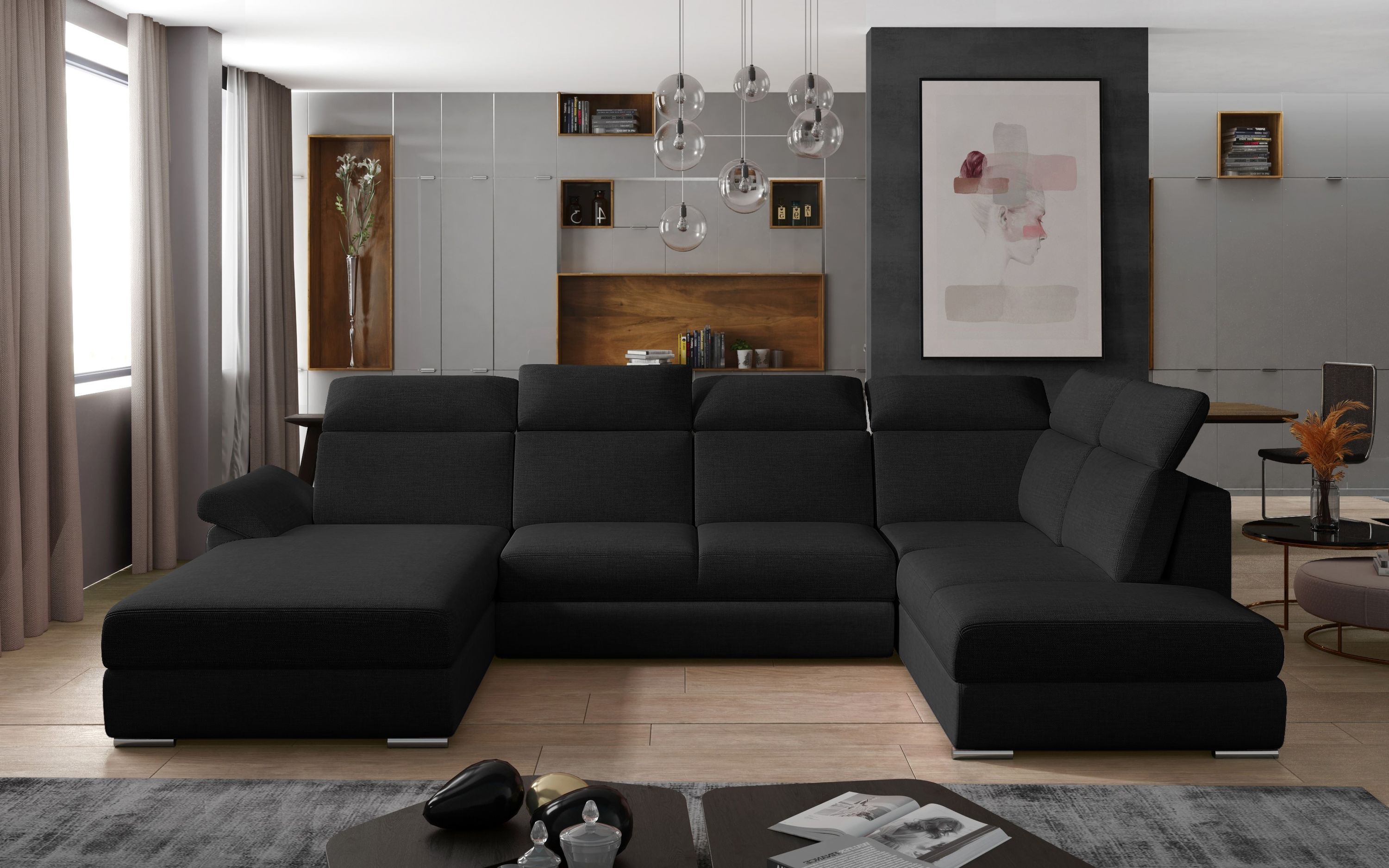 Entdecken Sie die vielseitige Wohnlandschaft Comfort - die ultimative Kombination aus Stil und Funktionalität für Ihr Zuhause! Verfügbar in einer breiten Auswahl an Farben und Stoffen, passt sie sich perfekt Ihrem individuellen Geschmack an. Mit einer praktischen Schlaffunktion, einem integrierten Bettkasten und einer einstellbaren Kopfstütze bietet die Comfort Wohnlandschaft maximalen Komfort und Flexibilität. Verwandeln Sie sie im Handumdrehen in eine gemütliche Schlafgelegenheit für Übernachtungsgäste und nutzen Sie den Bettkasten für zusätzlichen Stauraum. Ergänzen Sie Ihr Wohnzimmer um diese stilvolle Wohnlandschaft und entdecken Sie weitere Modelle in unserem Shop. Machen Sie Comfort zum Mittelpunkt Ihrer Wohnlandschaft und genießen Sie Komfort und Funktionalität in einem Möbelstück.