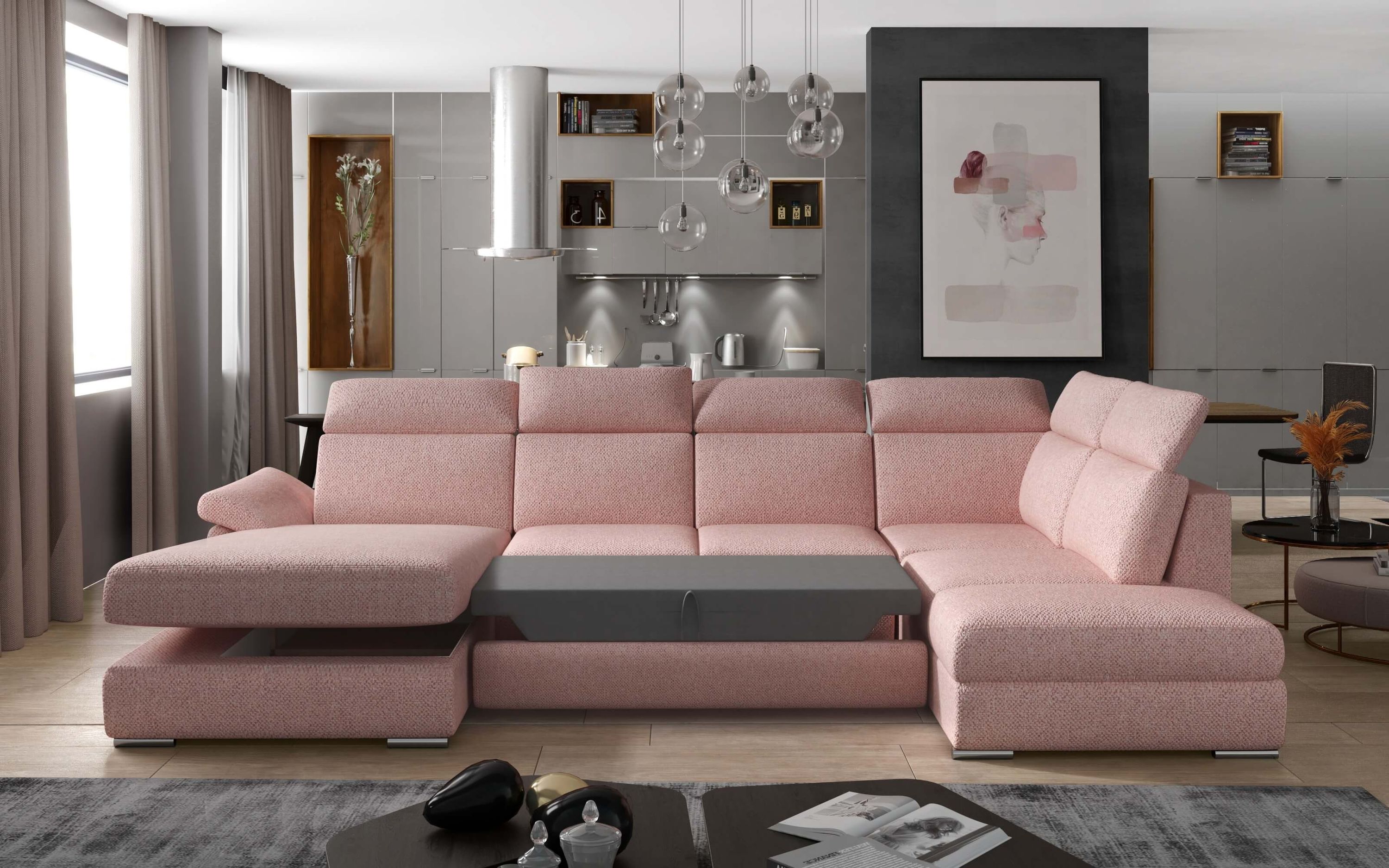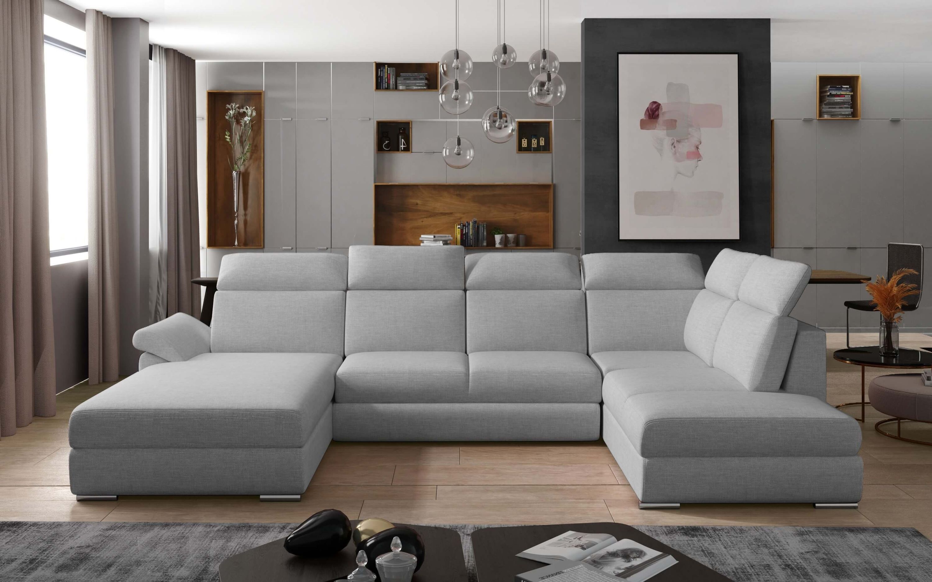 Entdecken Sie die vielseitige Wohnlandschaft Comfort - die ultimative Kombination aus Stil und Funktionalität für Ihr Zuhause! Verfügbar in einer breiten Auswahl an Farben und Stoffen, passt sie sich perfekt Ihrem individuellen Geschmack an. Mit einer praktischen Schlaffunktion, einem integrierten Bettkasten und einer einstellbaren Kopfstütze bietet die Comfort Wohnlandschaft maximalen Komfort und Flexibilität. Verwandeln Sie sie im Handumdrehen in eine gemütliche Schlafgelegenheit für Übernachtungsgäste und nutzen Sie den Bettkasten für zusätzlichen Stauraum. Ergänzen Sie Ihr Wohnzimmer um diese stilvolle Wohnlandschaft und entdecken Sie weitere Modelle in unserem Shop. Machen Sie Comfort zum Mittelpunkt Ihrer Wohnlandschaft und genießen Sie Komfort und Funktionalität in einem Möbelstück.